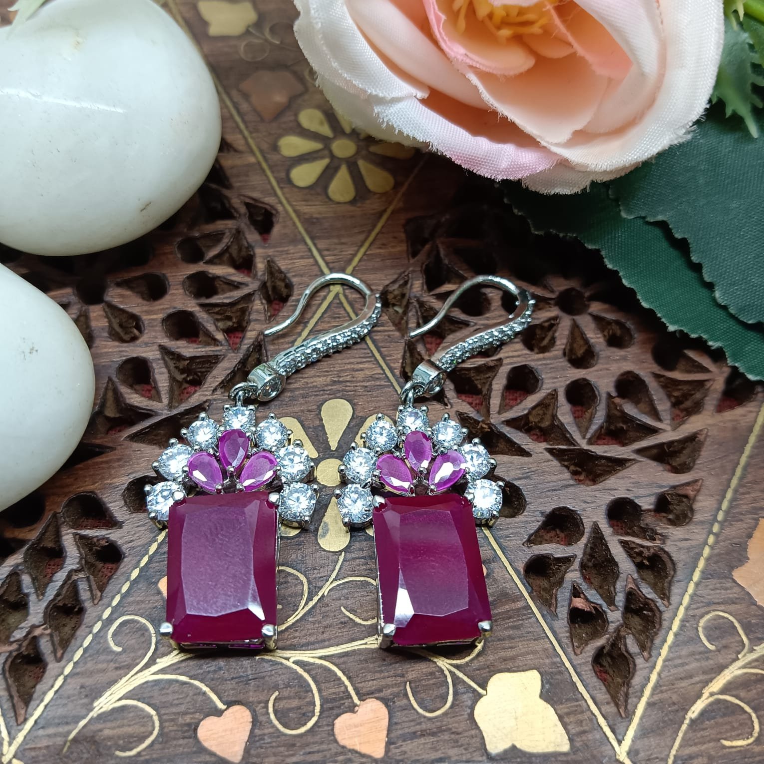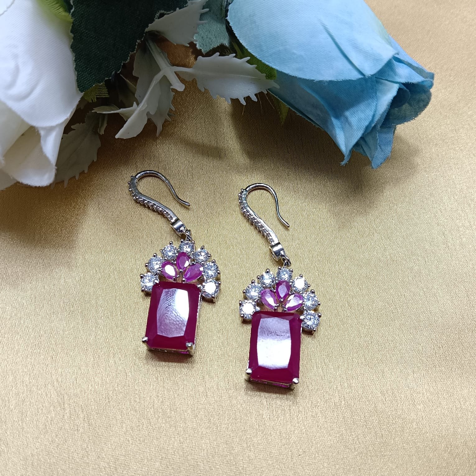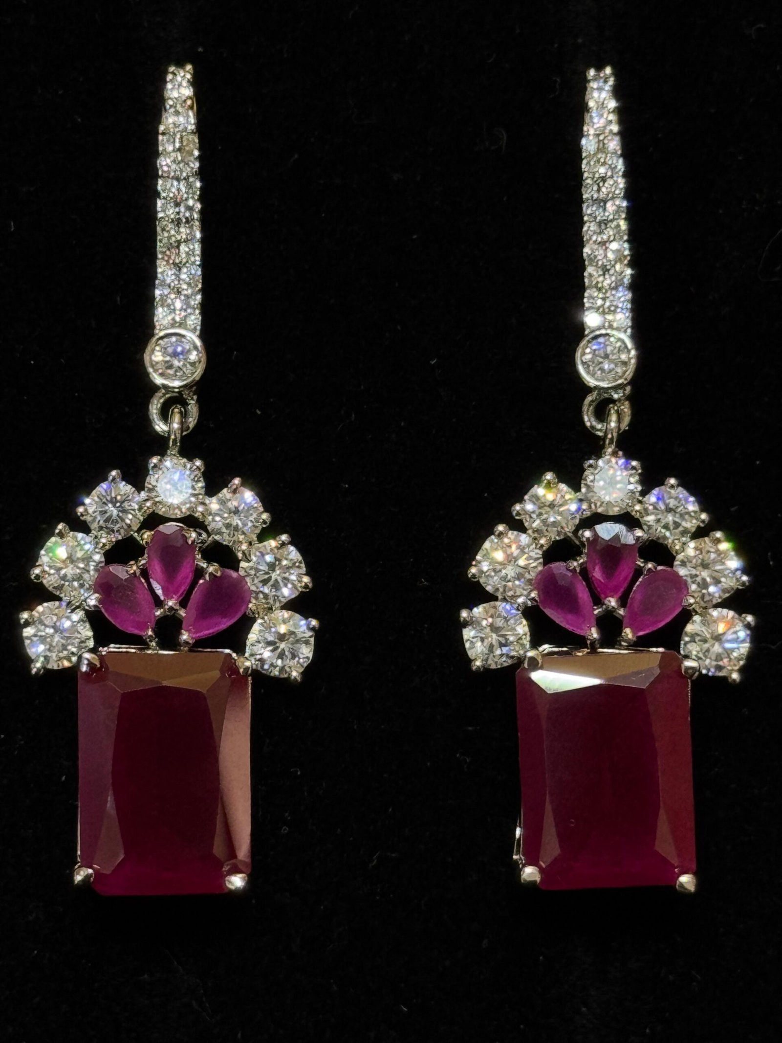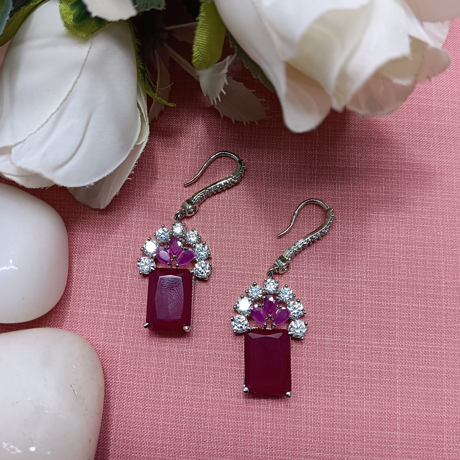 AD Studded Square Drop Earrings| Anti-tarnish Silver tone Earrings for Women and girls | Jewelry for Casual parties, wedding , anniversaries, and special occasions |
