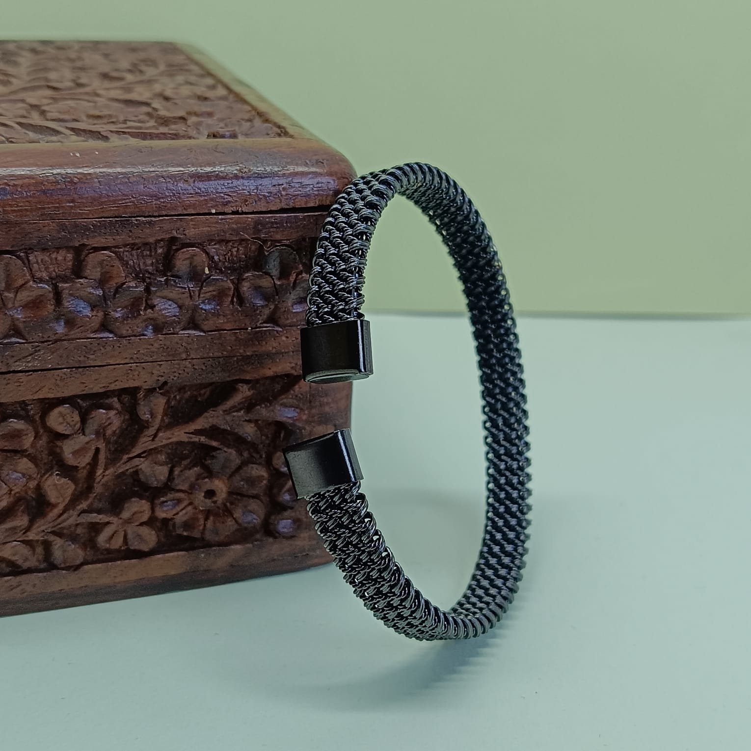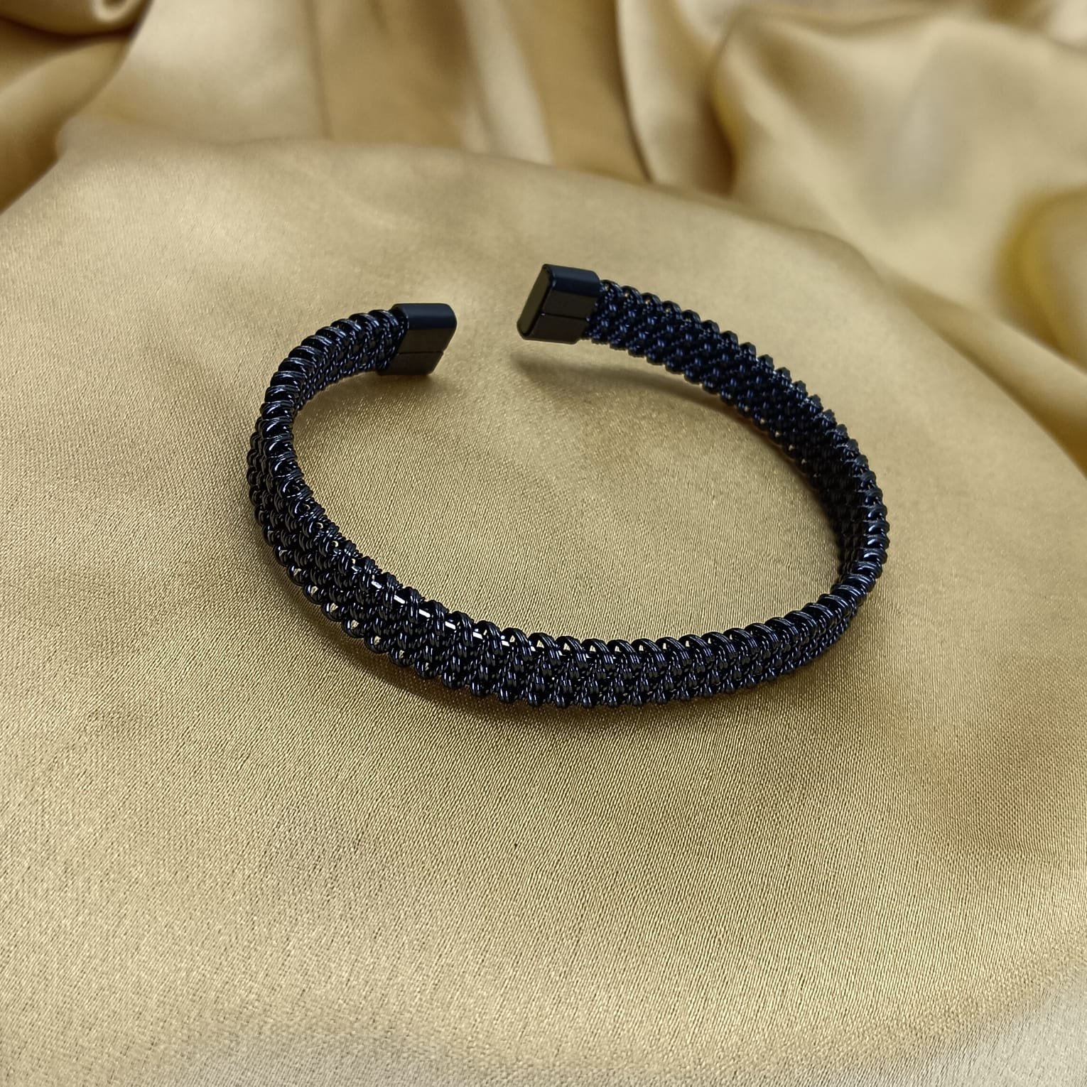 - PRODUCT DETAILS: This black cuff bracelet might just be your new favorite accessory. Crafted from strong, stainless steel and finished in a smooth, matte black, it brings just the right mix of edge and elegance. The interwoven mesh design gives it a modern, textured look, while the open cuff style means it’s easy to slip on and super comfortable to wear all day. Whether you’re dressing up for a night out or just adding a little extra to your everyday look, this piece fits right in. And thanks to its adjustable fit and smooth, rounded edges, it feels as good as it looks.
