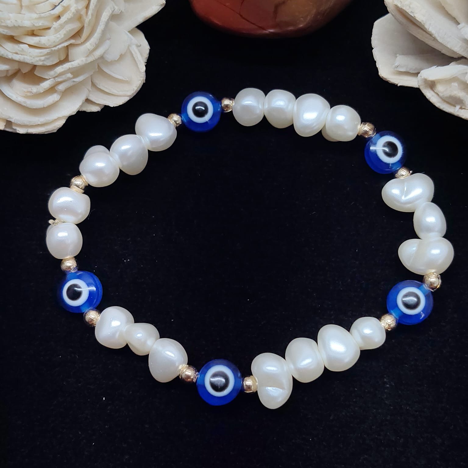 - PRODUCT DETAILS: This bracelet combines the timeless elegance of pearl-like bead with a vibrant evil eye charm, creating a stylish accessory suitable for various occasions. Crafted with pearl-like bead , each exhibiting a natural luster and unique shape, the bracelet features an eye-catching evil eye charm that enhances its visual appeal. Its versatile design ensures it complements a range of outfits, making it a perfect addition to any jewelry collection or a thoughtful gift.