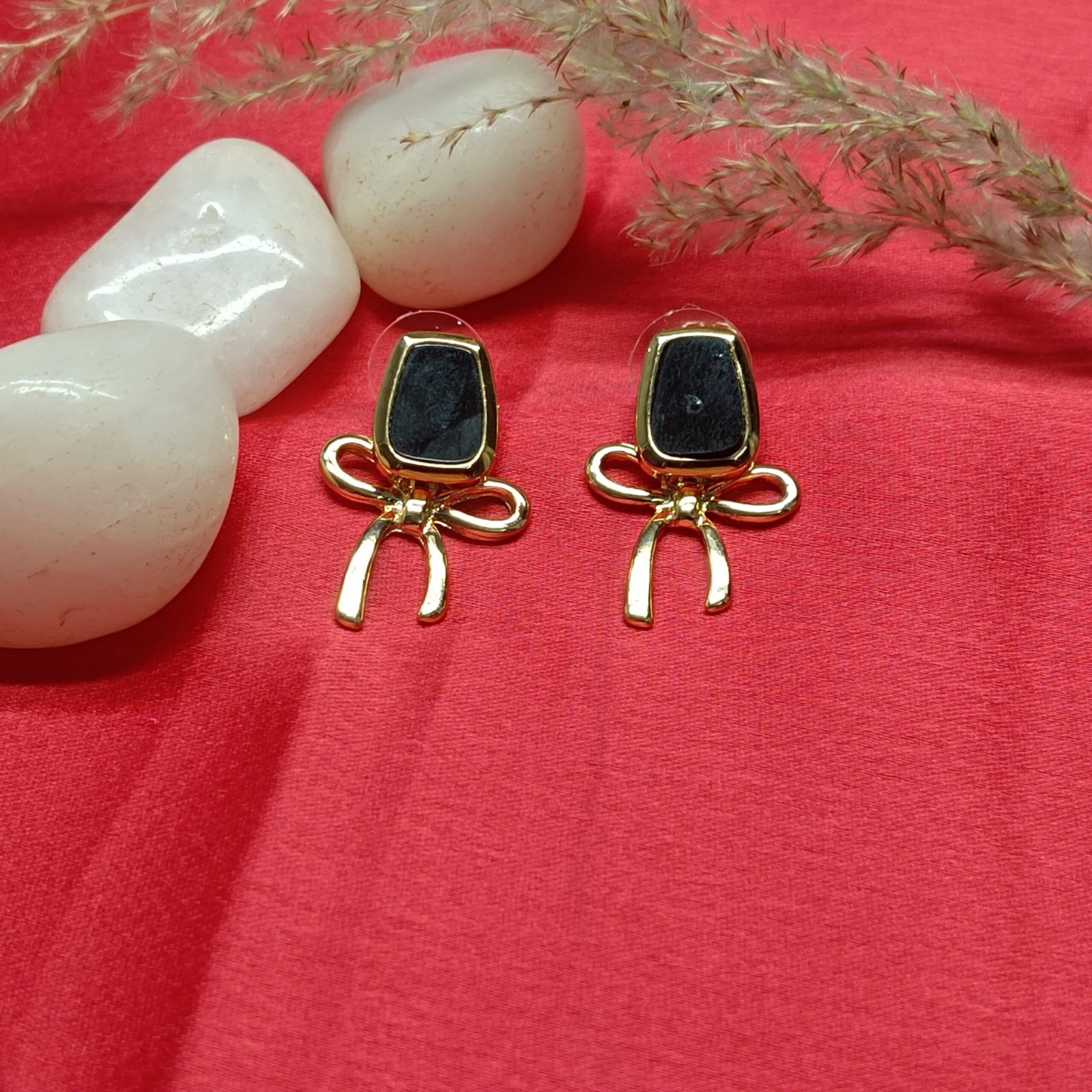 Be the first to review “Black Stone and Gold-Toned Bow Earrings” Cancel reply