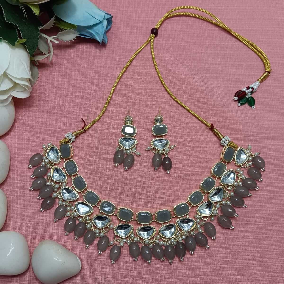 Choker Necklace and Earrings Set for Women | Stones with Gold-Tone Kundan Accents | Traditional Jewelry for Weddings & Festive Occasions