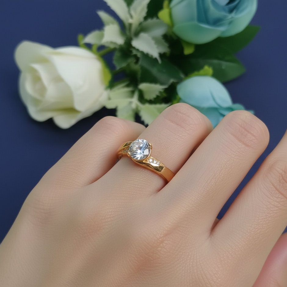 - PRODUCT DETAILS: This gold-tone ring features a single round-cut clear stone in a classic prong setting, creating a simple and refined look. The band tapers subtly and is accented with small stones along the sides, enhancing the main stone with understated sparkle. The adjustable open-back design ensures a comfortable fit for various finger sizes. Lightweight and versatile, the ring is suitable for everyday wear or special occasions and can be worn alone or stacked with other rings.