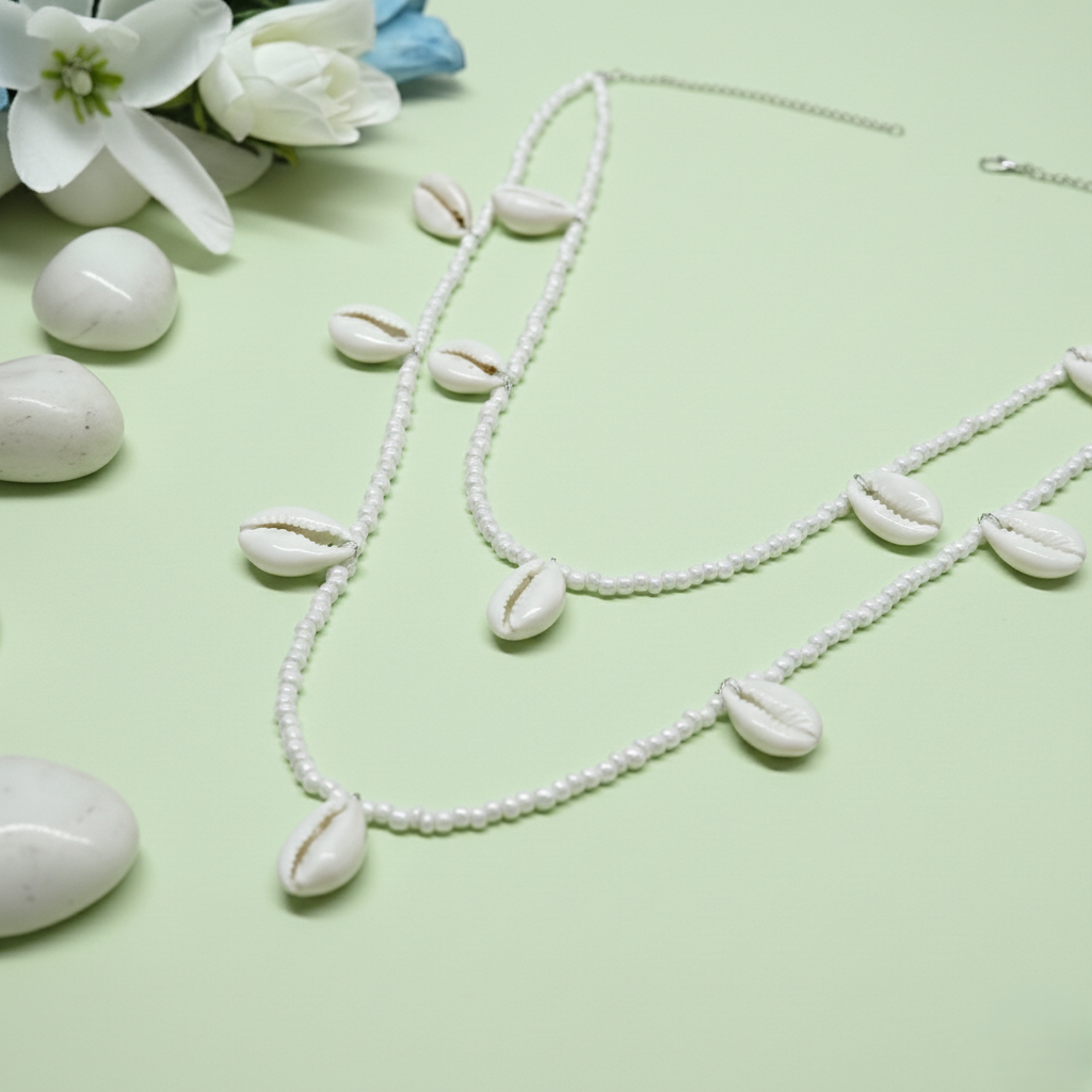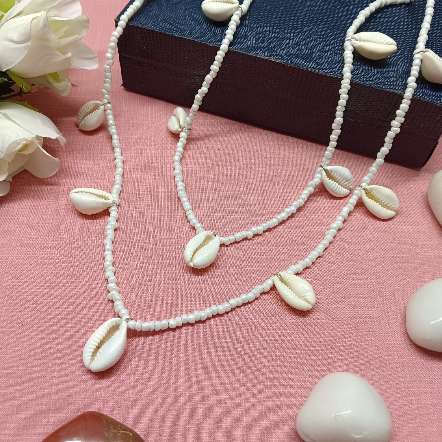 Handcrafted Cowrie Shell Beaded Layered Necklace for Women & Girls | Coastal & Bohemian Style Jewelry | Beach, Summer & Casual Wear