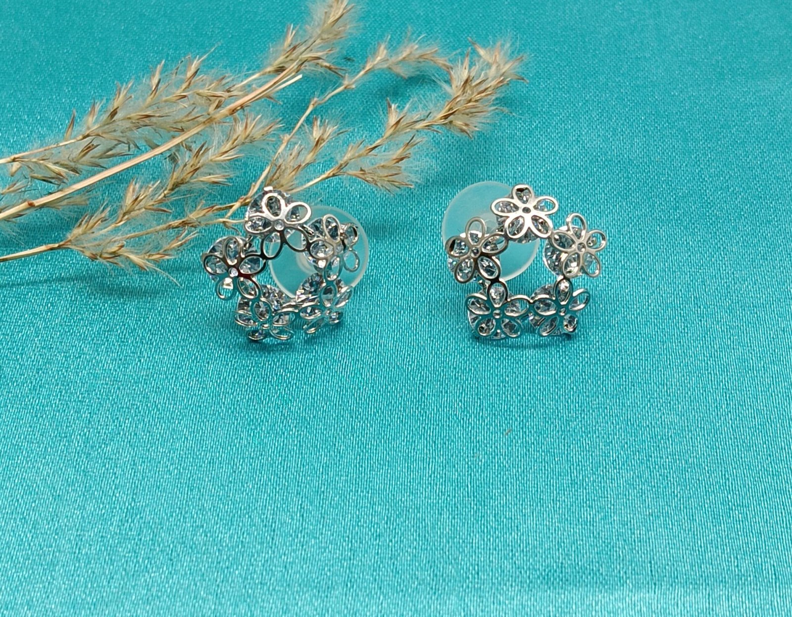 Silver-Toned Openwork Design with Sparkling Stones – Elegant Lightweight Jewelry for Everyday Wear, Parties, and Special Occasions