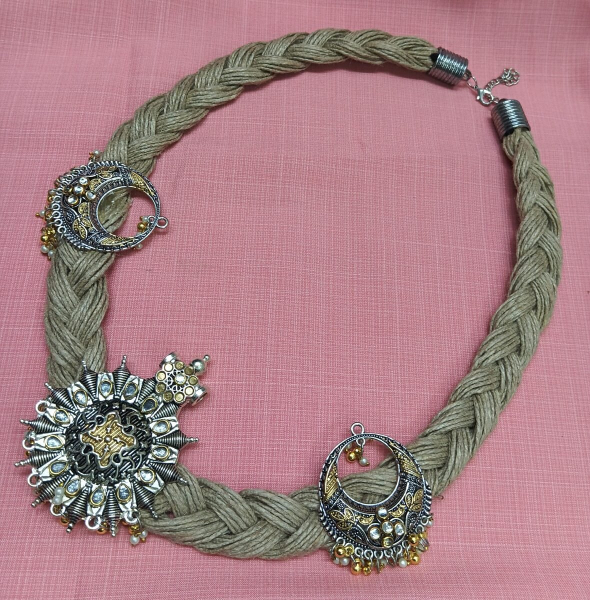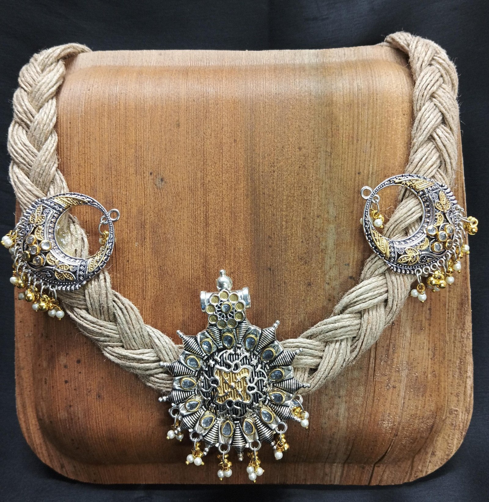 Designer Dual Tone Kundan Pendant with Chandbali Jute Necklace for Women and Girls| Unique Jute necklace for women and girls| Festive and party