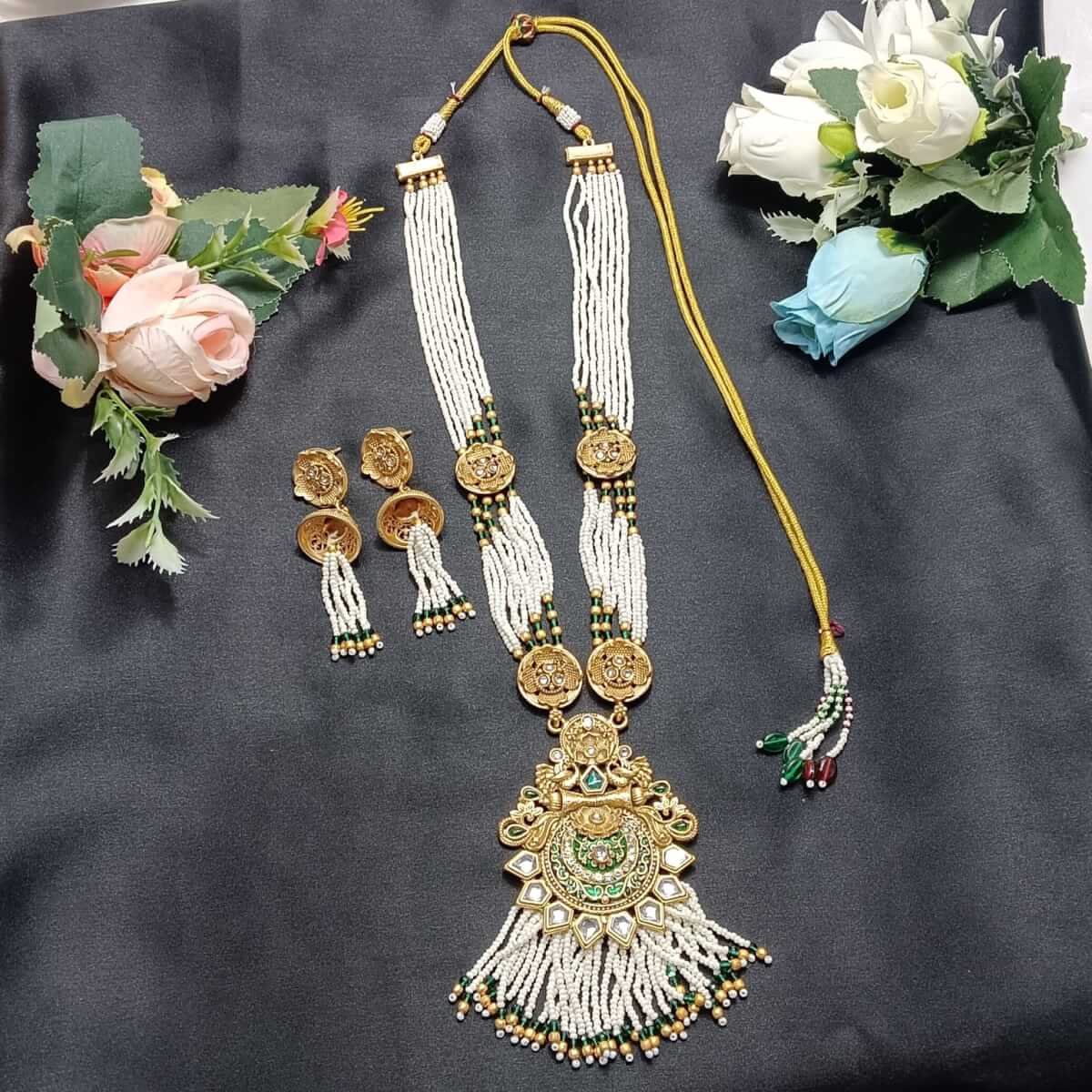 - PRODUCT DETAILS: Elevate your style with the exquisite Rani Har Jewelry Set, designed to add a touch of royal elegance to any outfit. Inspired by traditional Indian craftsmanship, this set is perfect for weddings, festivals, or any special event where you want to shine. Timeless Design: This jewelry set features intricate designs, combining classic elements with a modern twist to create a regal look that never goes out of style. Premium Quality: Crafted with high-quality materials, including lustrous faux pearls, kundan stones, and intricate gold-tone detailing, the set is designed to last and remain a centerpiece in your collection. Versatile: Ideal for a variety of occasions, from weddings and receptions to festive celebrations and cultural events. Comfortable Wear: Despite its ornate design, the jewelry set is lightweight and comfortable, ensuring you can wear it for extended periods without discomfort.