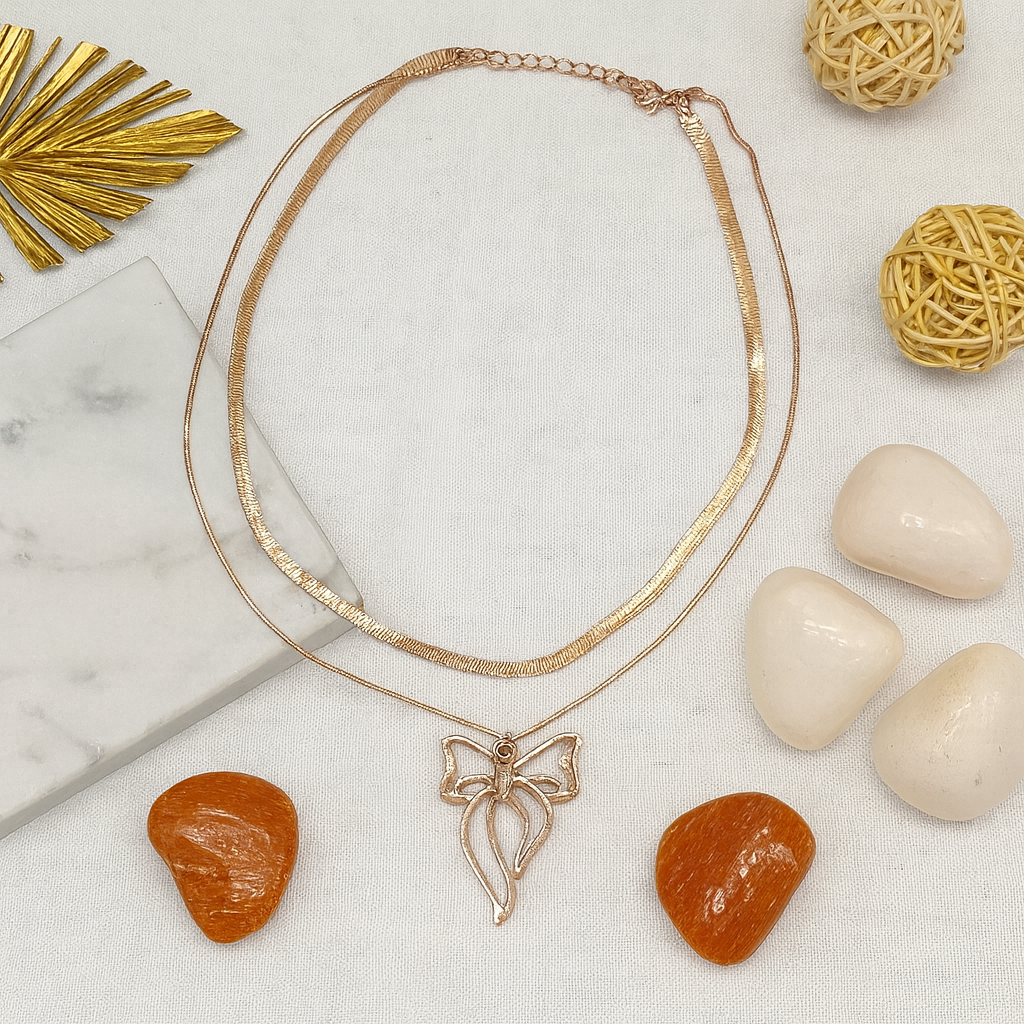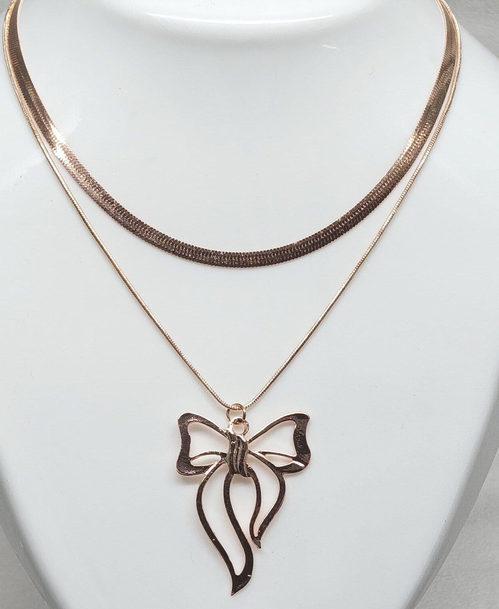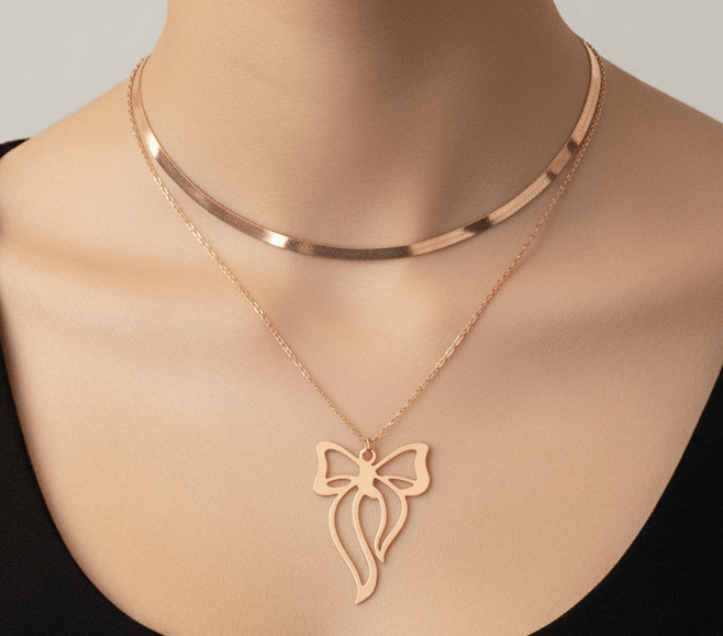 Rose Gold Double-Layered Necklace with Bow Pendant for Women – Elegant Feminine Jewelry – Perfect for Everyday Wear, Parties, Weddings, and Special Occasions