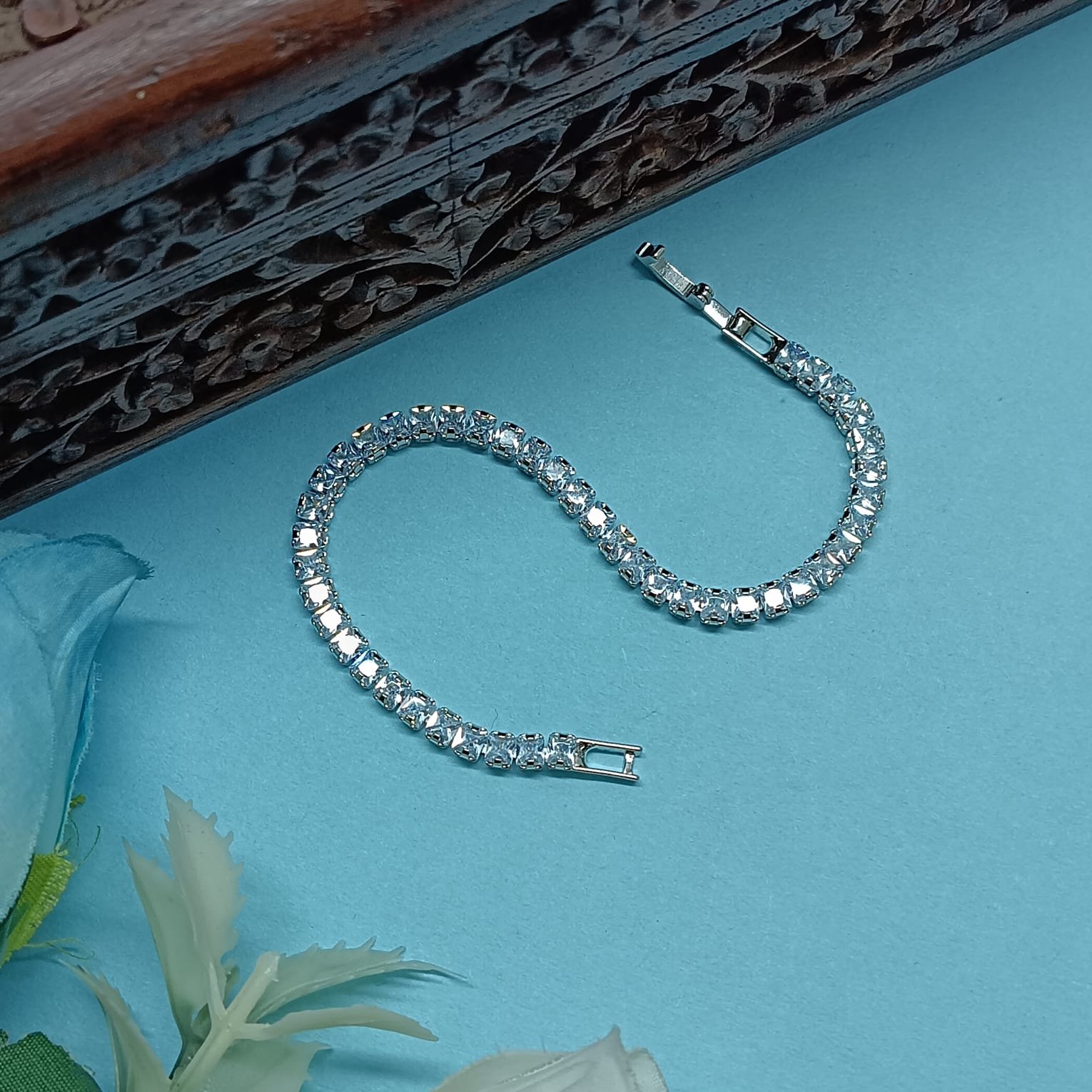 - PRODUCT DETAILS: Timeless, refined, and beautifully minimal—this silver-tone CZ tennis bracelet is crafted to bring a soft yet stunning sparkle to your wrist. Each cubic zirconia stone is precision-cut and carefully set to create a continuous line of brilliance, offering the look of fine jewelry with everyday comfort. The bracelet’s sleek and polished finish makes it perfect for both special occasions and daily wear. Whether paired with evening outfits, bridal ensembles, or simple casual looks, it adds a touch of luxury that feels effortlessly elegant. Lightweight, smooth, and sophisticated—it’s the kind of piece that becomes a wardrobe favorite, worn and loved for years.