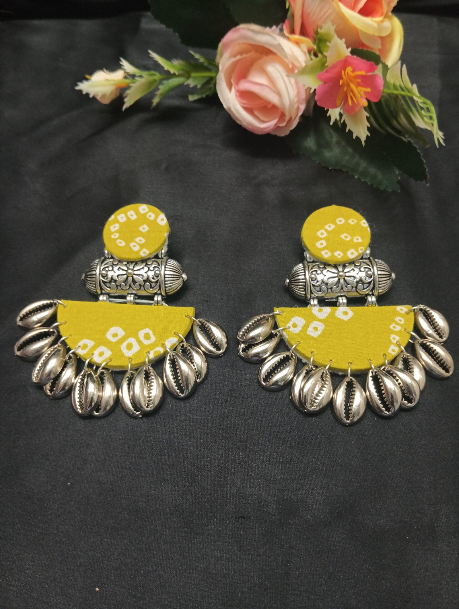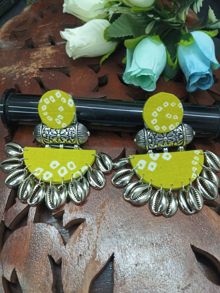 - PRODUCT DETAILS: NIPSTec handcrafted fabric earrings celebrate the timeless beauty of Bandhani print, a centuries-old art form deeply rooted in India’s heritage. The vibrant yellow fabric, adorned with intricate tie-dye patterns, exudes vintage charm, while the metal shell accents add a touch of rustic elegance. Perfect for both everyday wear and special occasions, these statement earrings seamlessly blend tradition with contemporary style, making them an exquisite addition to any jewelry collection.