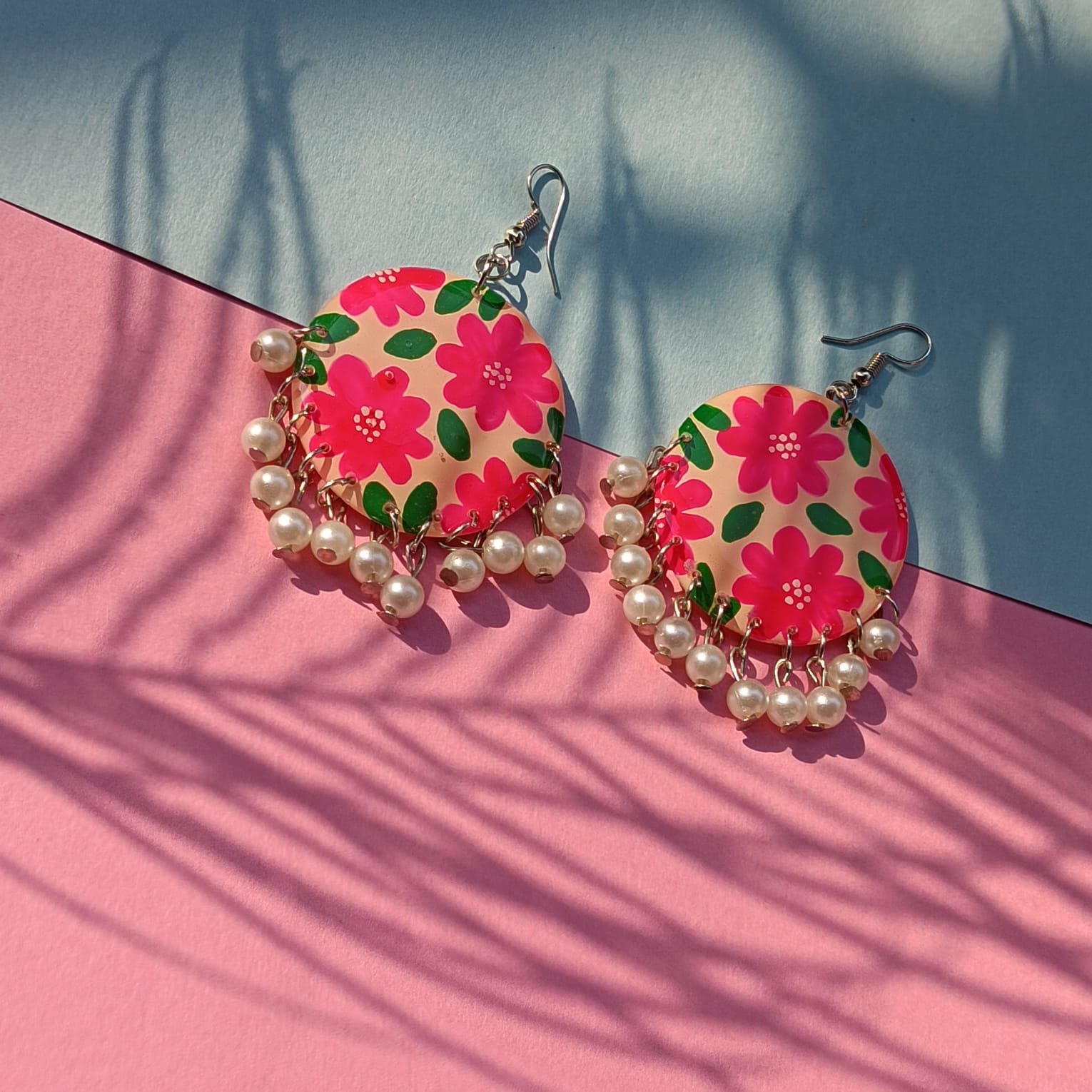 Floral Resin Drop Earrings for Women | Lightweight Jewelry with Pearl Dangles | Festive, Casual & Summer Accessories
