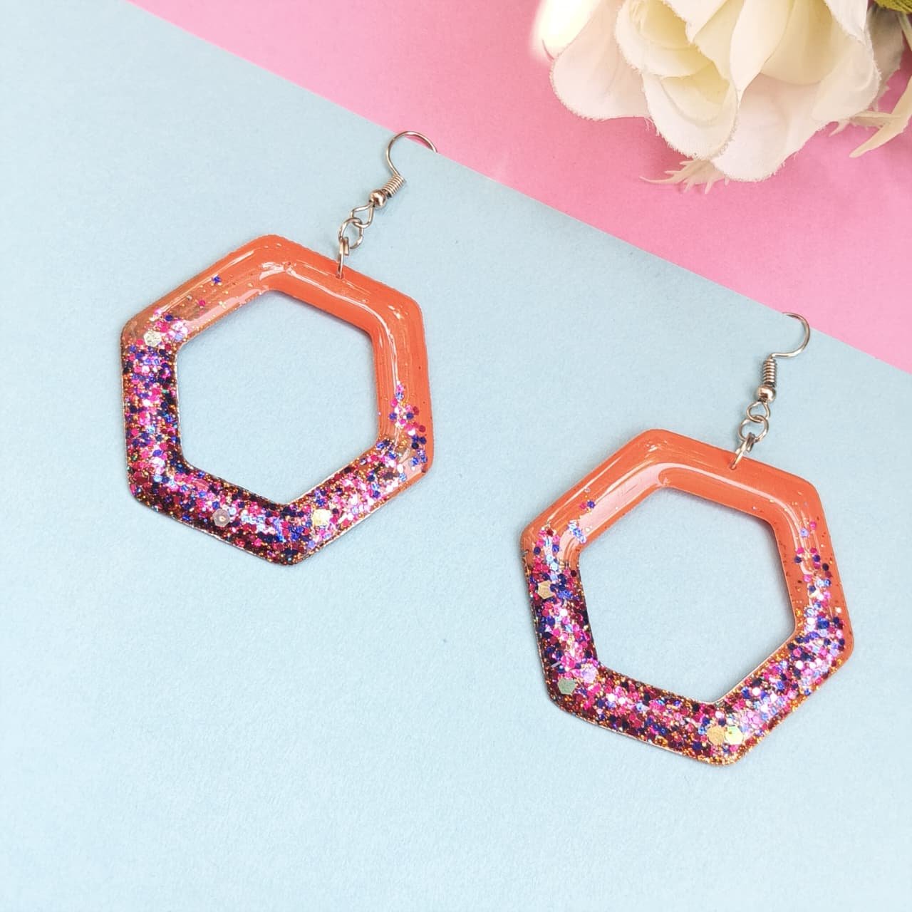 Geometric Dangles Resin Earrings for Women | Statement Jewelry | Trendy Artistic Accessory for Parties & Festivals