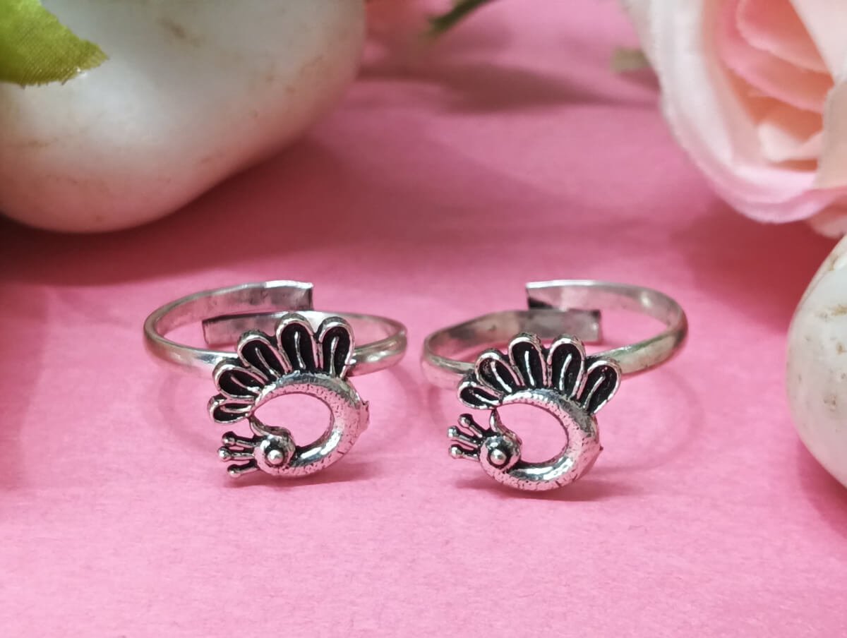 Tags: Adjustable Toe Rings, Designer toe rings, Ethnic toe rings, Everyday wear toe rings, German Silver, German Silver Toe rings, Minimal Jewelry, Oxidised toe rings, Peacock design toe rings, Silver-toned Toe rings, Statement toe rings, under-200