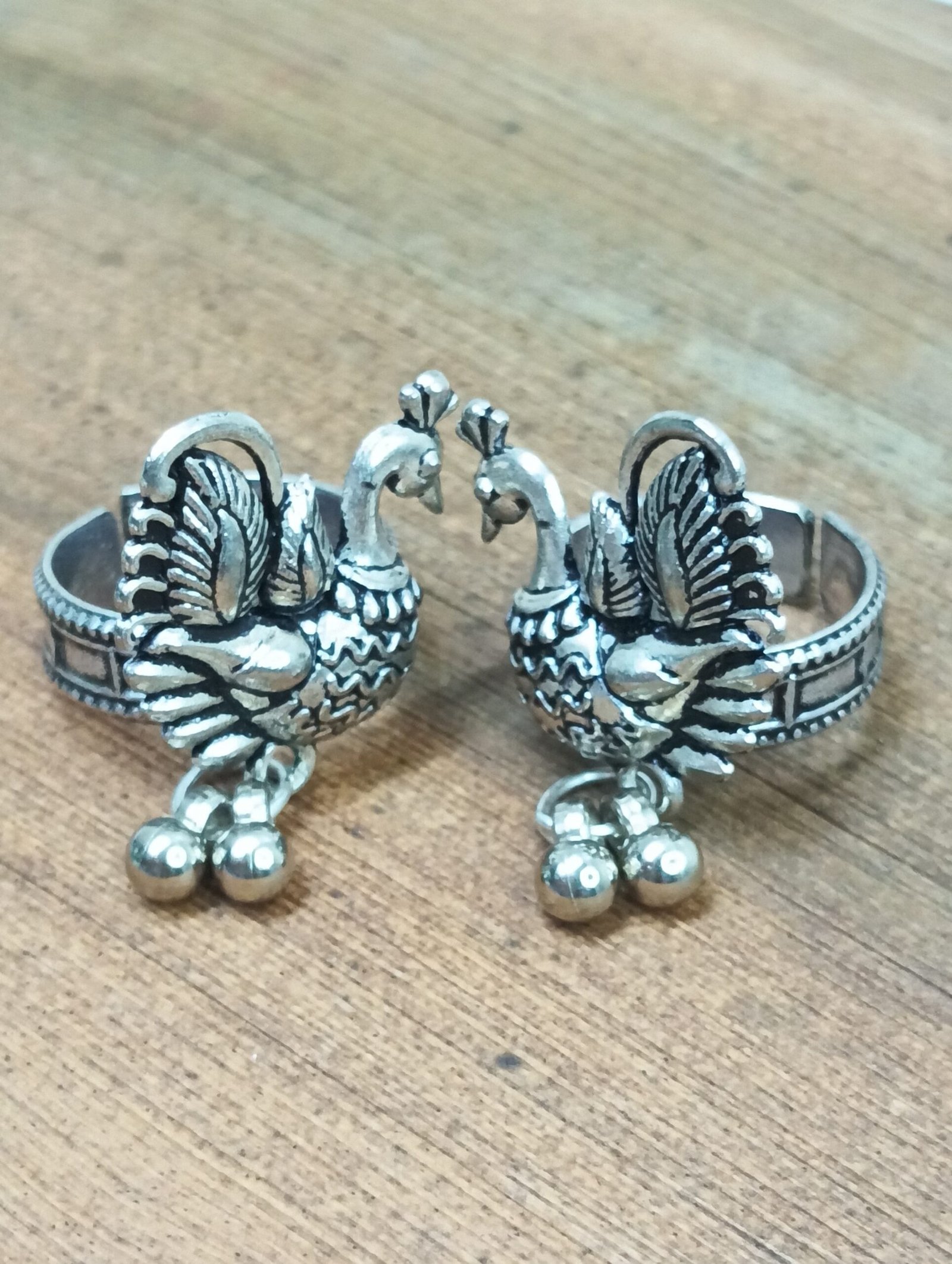 Antique German Silver Peacock Design Toe Rings for Women| Traditional Indian Style Jewelry| Lightweight and comfortable Toe rings