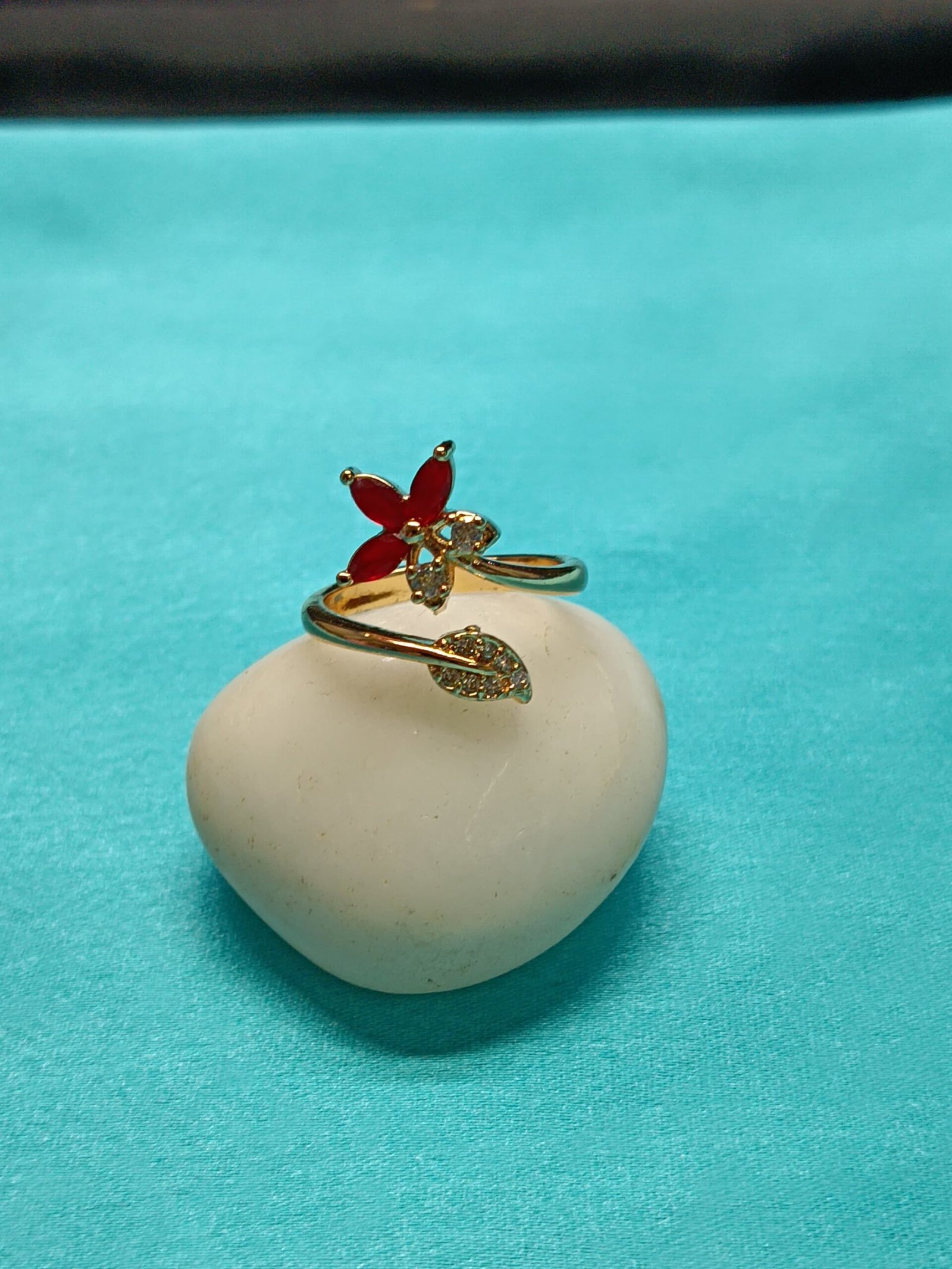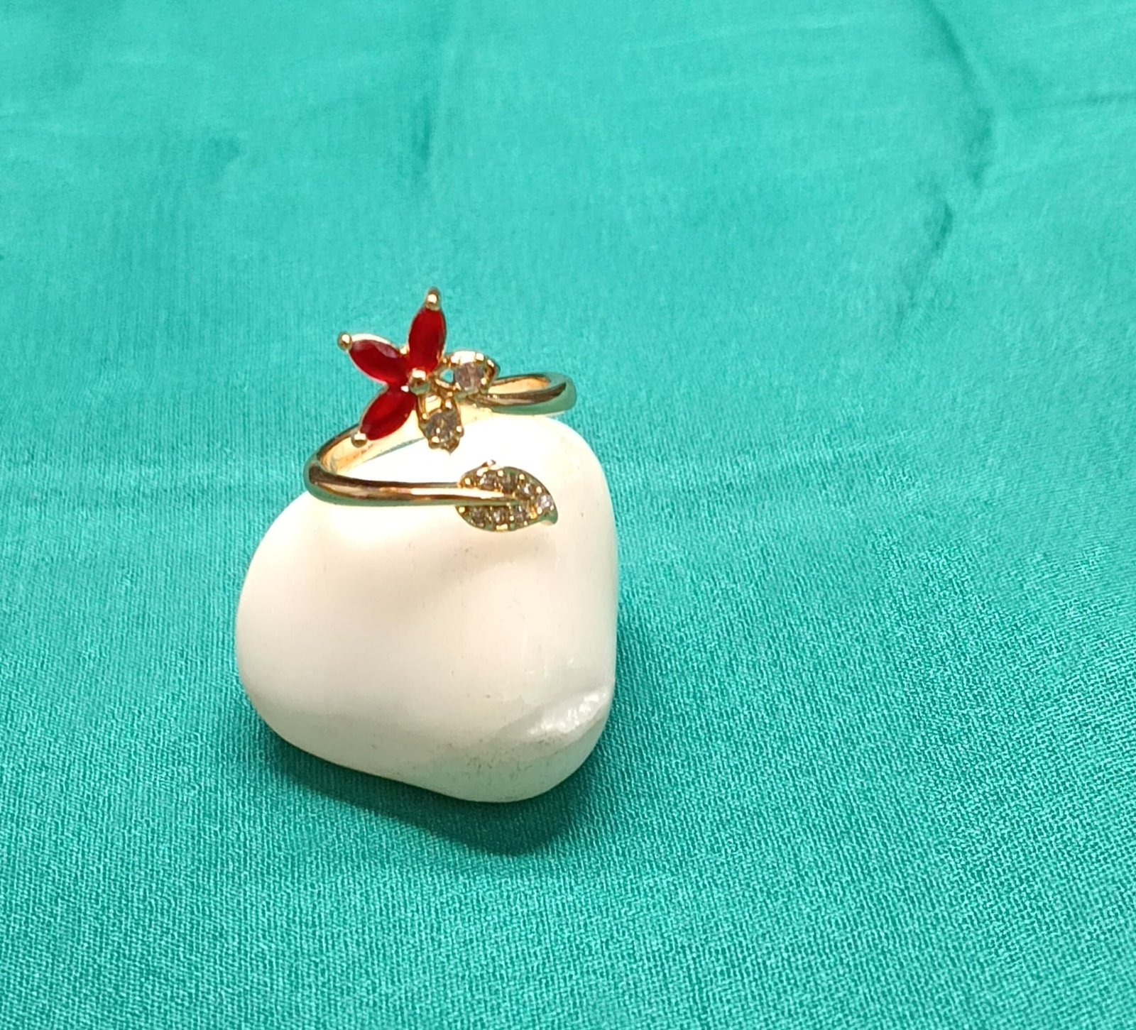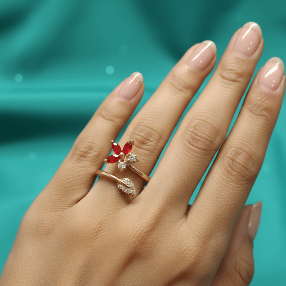 Gold-Tone Adjustable Ring with Red Petal Design| Elegant Open Band Jewelry for Women| Ideal for Parties, Festive Looks & Everyday