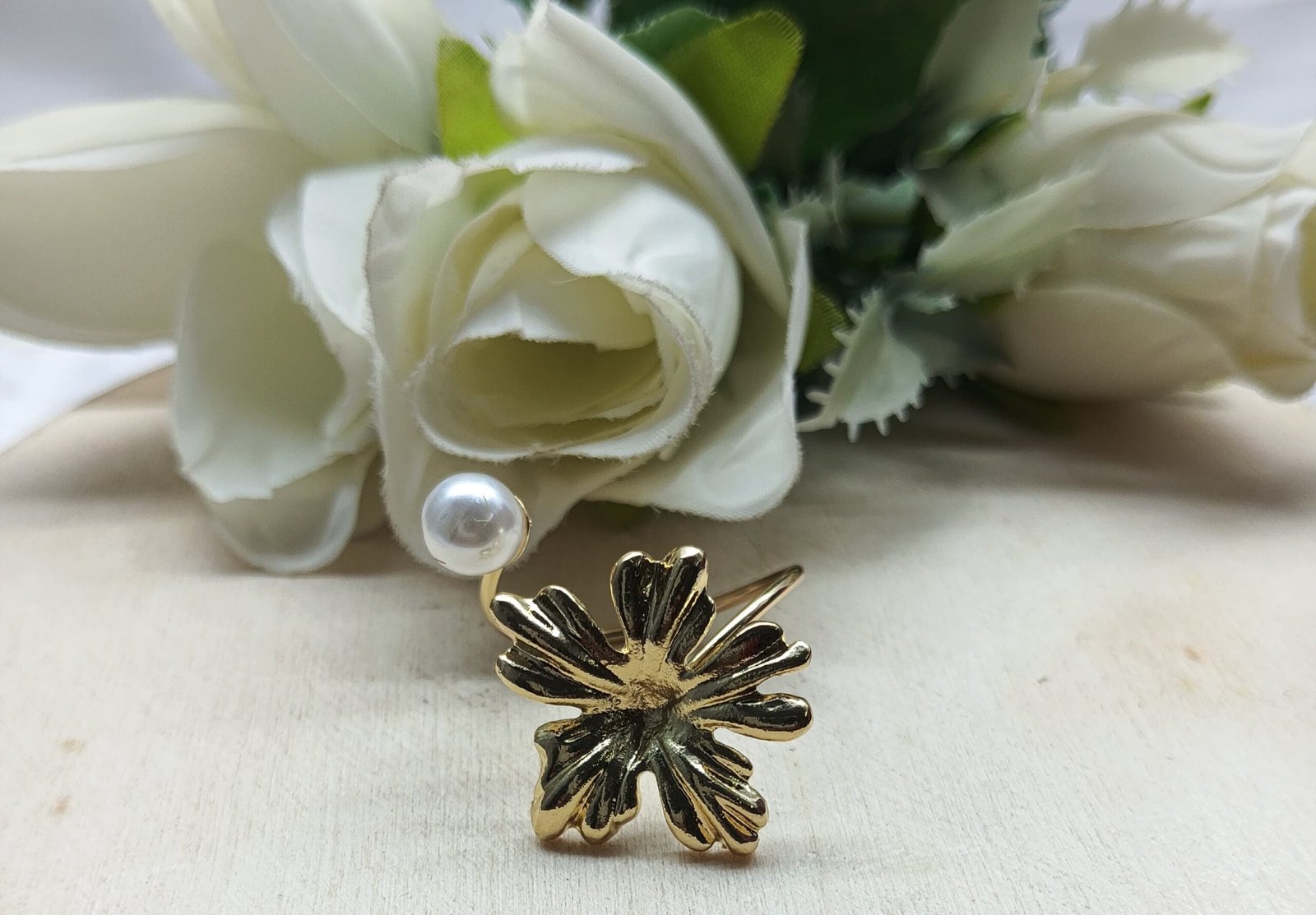 Adjustable Band with a Lustrous Pearl Accent – Elegant, Nature-Inspired Jewelry for Daily Wear, Garden Parties, Weddings, or Special Occasions