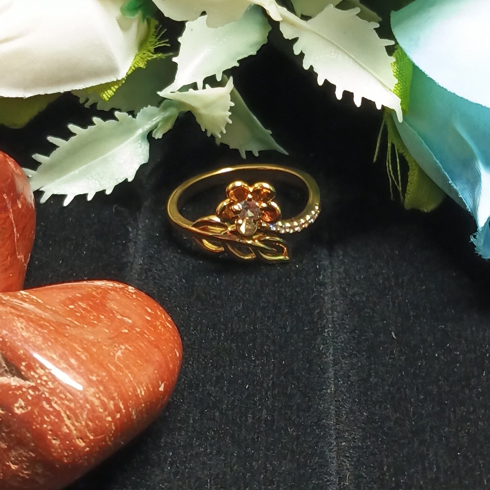 Be the first to review “Gold-Tone Floral Stone and Leaf Ring” Cancel reply