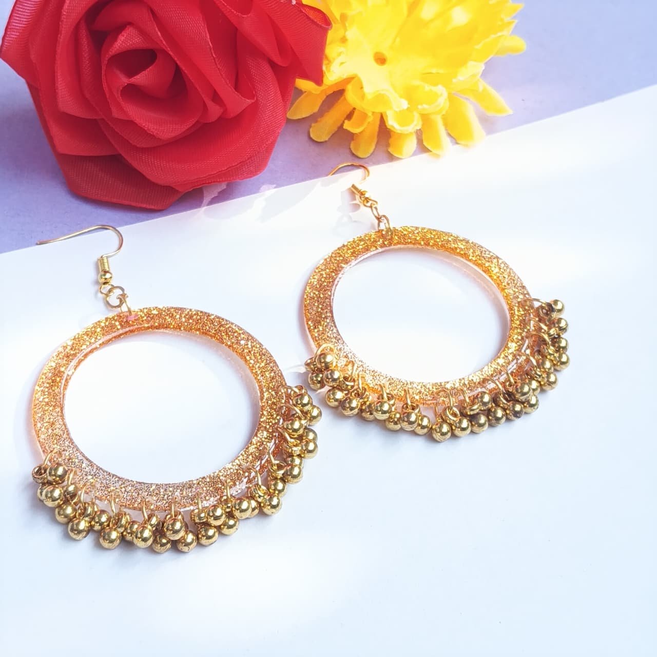 - PRODUCT DETAILS: These traditional Indian earrings feature a classic Bali design with a row of small, dangling ghungroo beads along the bottom edge. Crafted in a timeless gold-tone finish, they showcase authentic Indian craftsmanship and cultural detailing. Lightweight and versatile, they are perfect for festive occasions, celebrations, or pairing with ethnic wear.