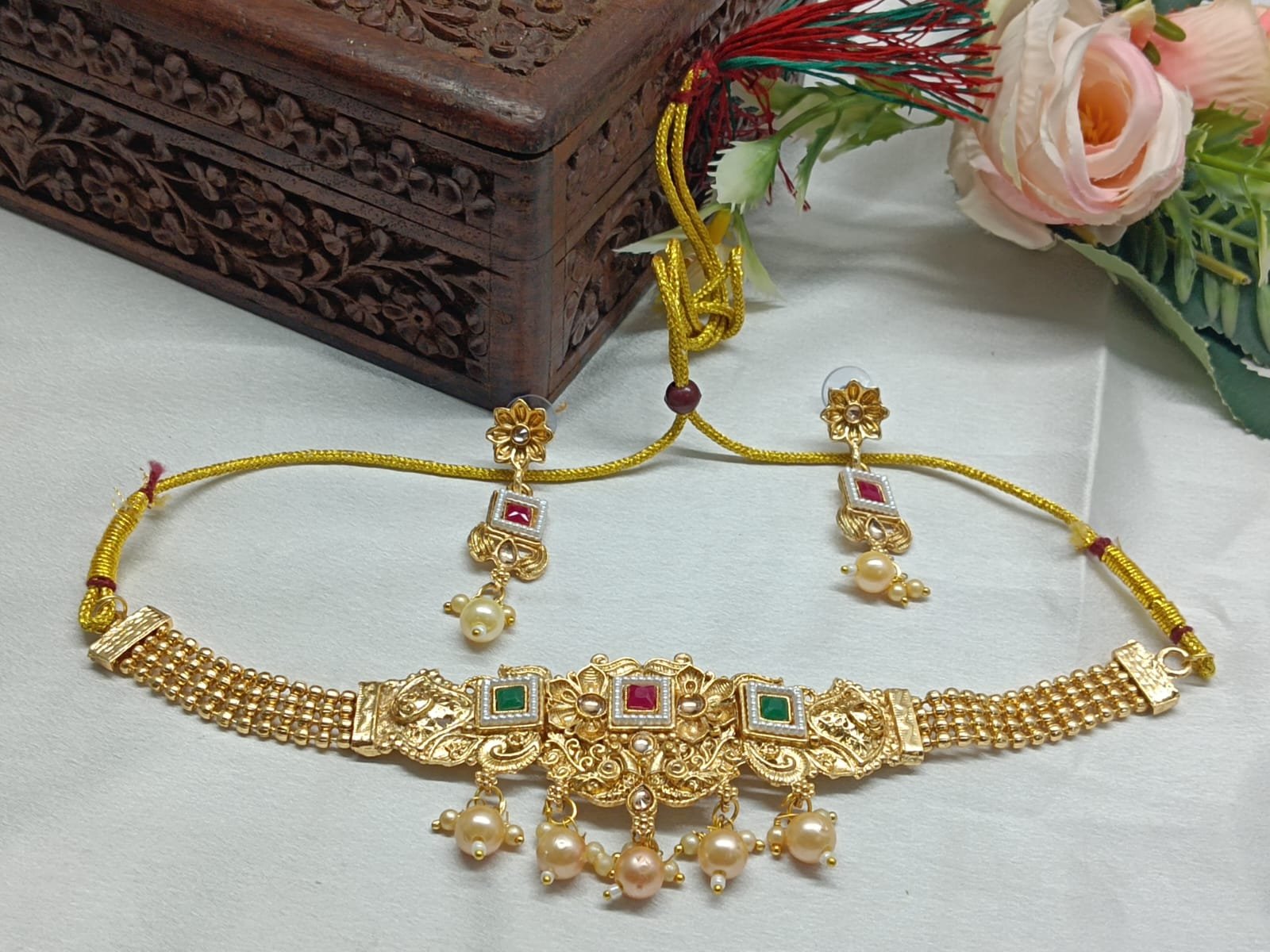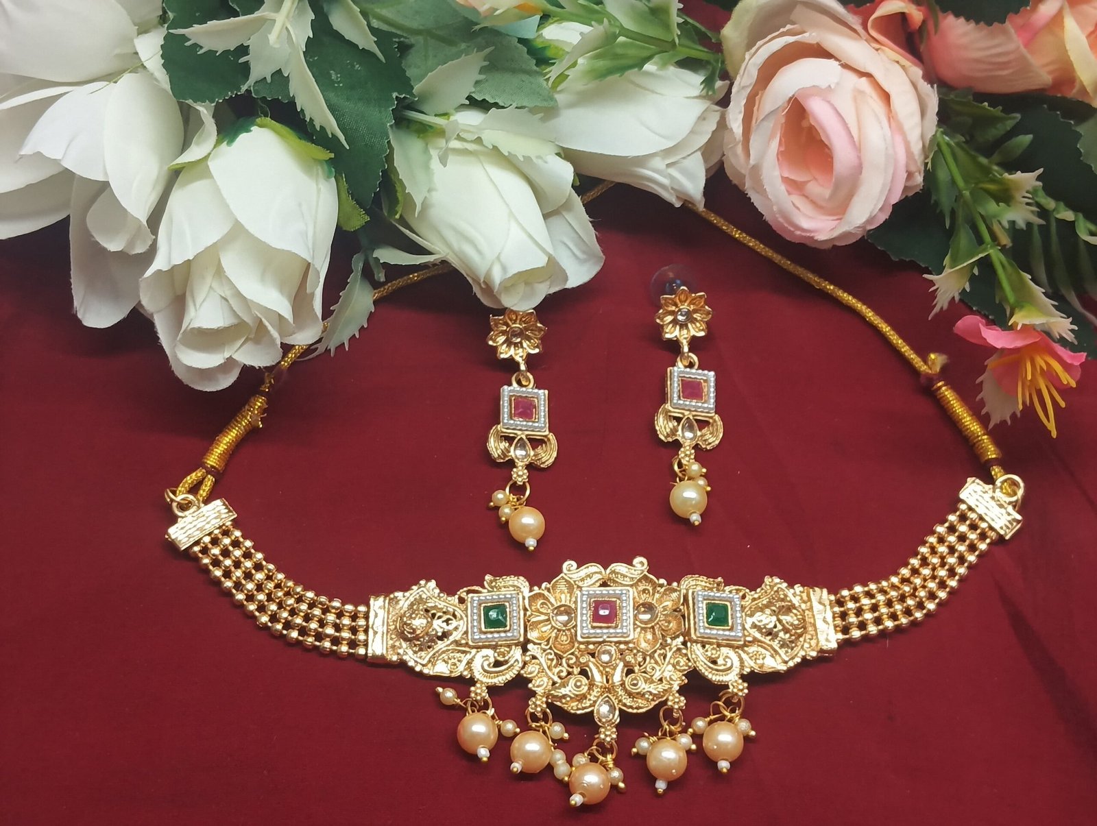 Traditional Necklace with Matching Earrings | Ethnic Wear for Festivals & Weddings