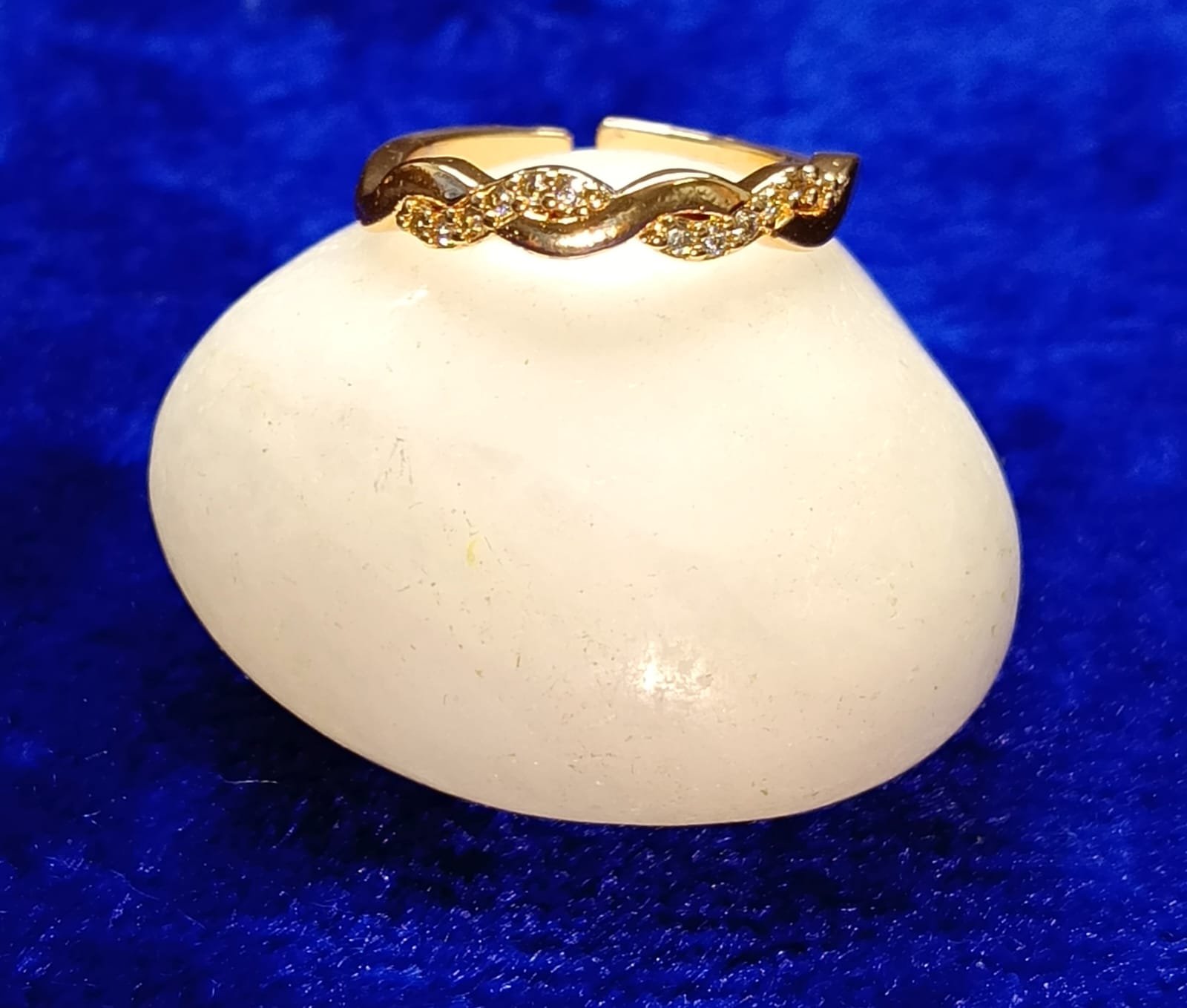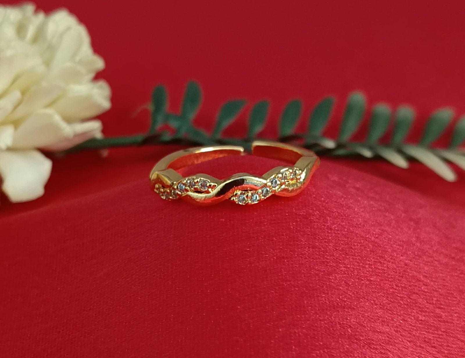 - PRODUCT DETAILS: Add a refined touch to your jewelry collection with this gold-tone ring featuring a graceful, wave-inspired design. Made from sturdy metal and finished in a warm gold hue, the ring is adorned with tiny shimmering stones that bring a hint of sparkle to your look. Its fluid shape gives it a modern, artistic edge—ideal for everyday elegance or special occasions. Whether worn alone or layered with other rings, it makes a stylish and timeless statement.
