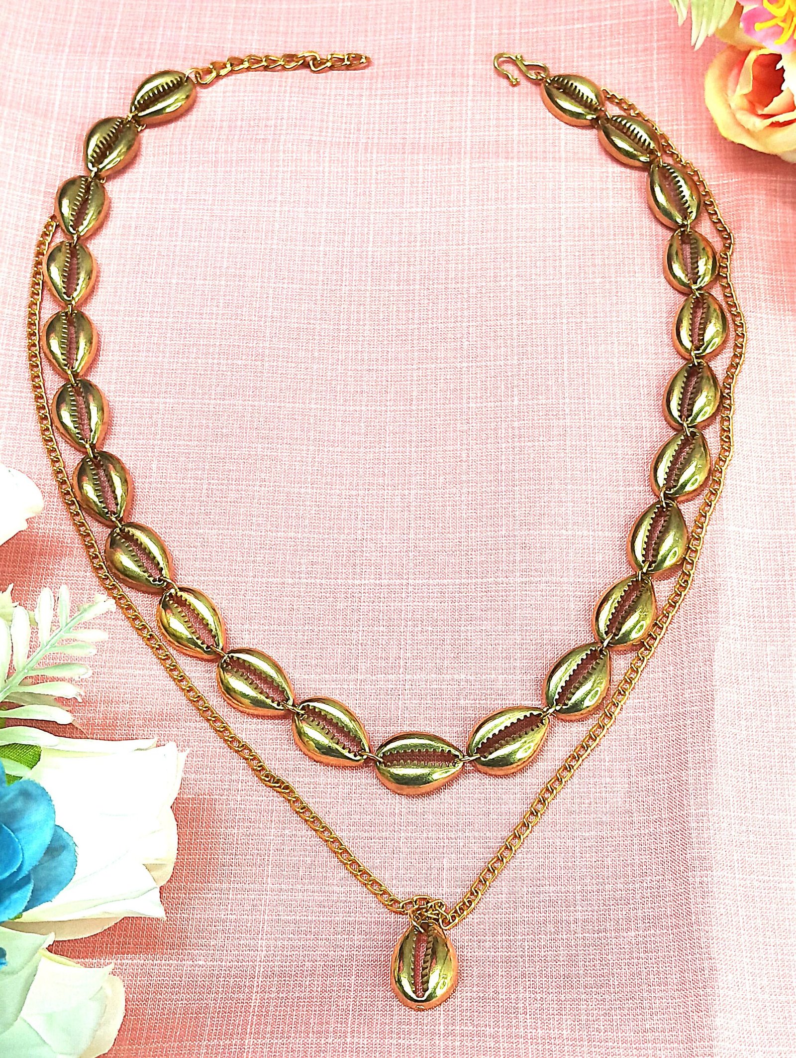 - PRODUCT DETAILS: This NIPSTec necklace features a stylish golden, double-layered design adorned with cowrie shells. The shorter layer is decorated with multiple small cowrie shells aligned horizontally, while the longer layer showcases a single cowrie shell pendant, creating a beautiful layered effect. Crafted from durable alloy, this necklace reflects a bohemian, beach-inspired style often known as a “Boho Multilayer Ocean Seashell Beach Pendant Necklace.” The golden tone adds a warm, radiant charm that complements a variety of outfits. Lightweight and versatile, it’s perfect for beach outings, vacations, casual gatherings, or everyday wear. Its effortlessly chic look pairs well with both Western and Indo-Western styles, making it a must-have accessory for any jewelry lover.
