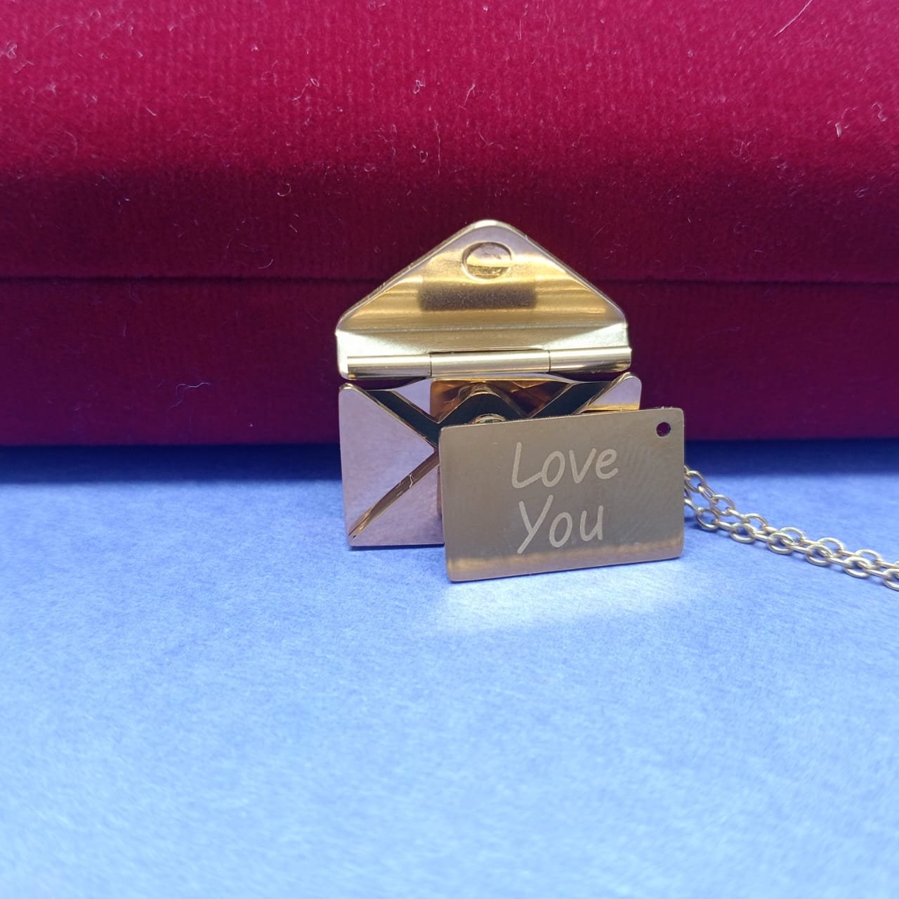 Gold-Tone Envelope Pendant with “I Love You” Engraving | Minimal Graceful Design|Elegant Gift for Someone Special & Loved One