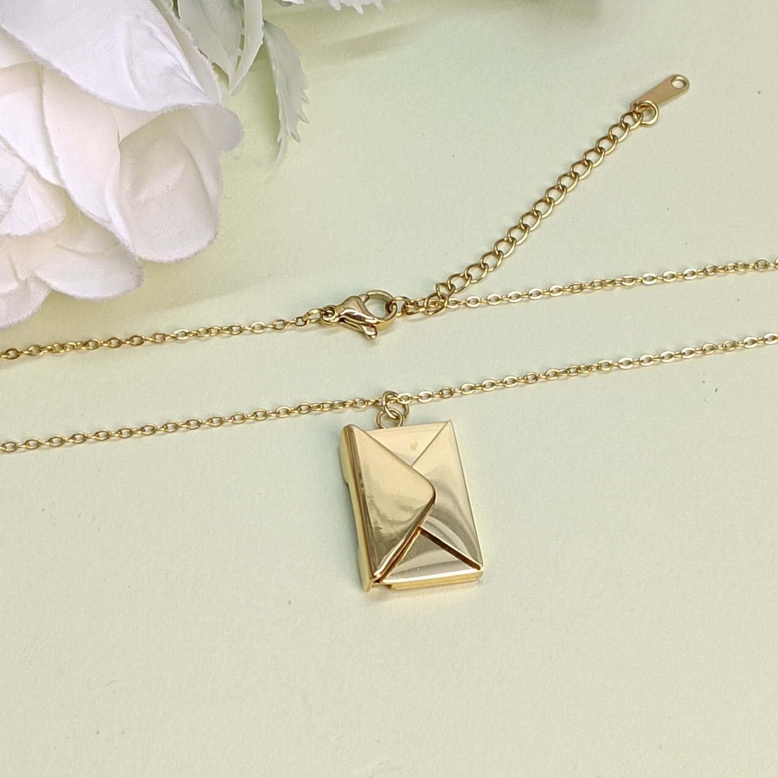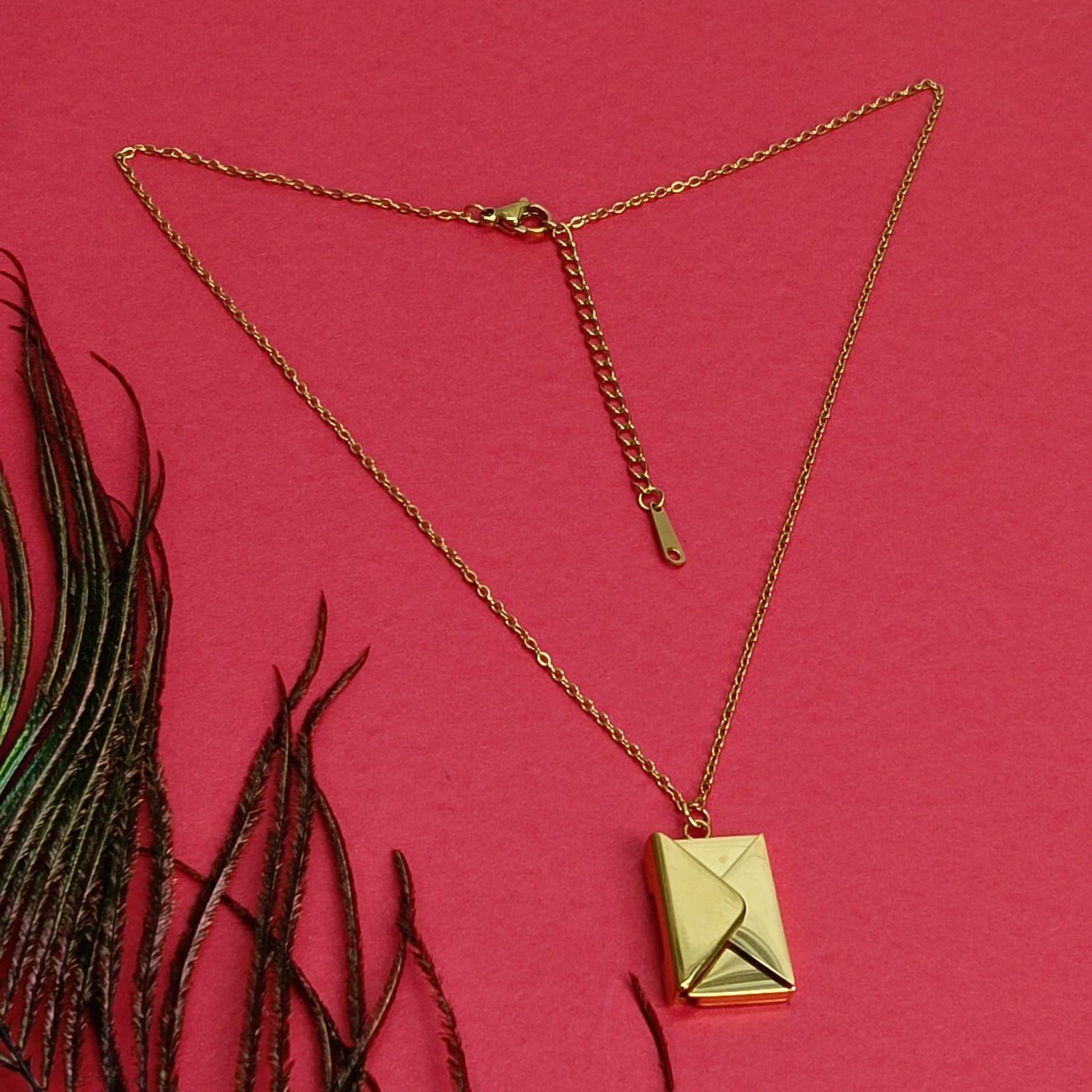 - PRODUCT DETAILS: This gold-tone envelope pendant features a sleek and minimal design that adds a refined touch to any outfit. The envelope-shaped pendant represents messages and thoughtful expression, paired with a matching gold-tone chain for a balanced and polished appearance. Finished with a smooth, polished surface, this pendant offers a subtle shine suitable for regular wear as well as special occasions. Its lightweight construction ensures comfortable use throughout the day. The versatile design allows it to be styled easily with casual outfits, office wear, or party attire. Designed for everyday practicality and timeless appeal, this pendant is a thoughtful and lovely gift choice for your girlfriend, wife, or loved one on birthdays, anniversaries, Valentine’s Day, or just to say “I love you.”