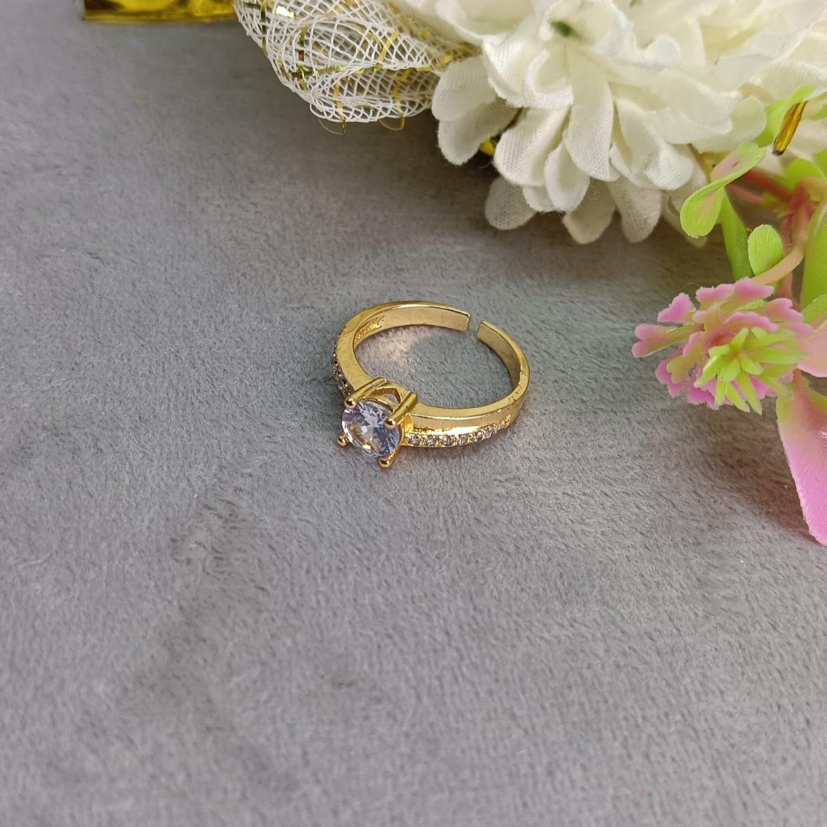 Graceful Cubic Zirconia Gold-tone Ring for Women| Adjustable & Lightweight Design| Suitable for Everyday Wear, Office Use, Parties & Festive Occasions