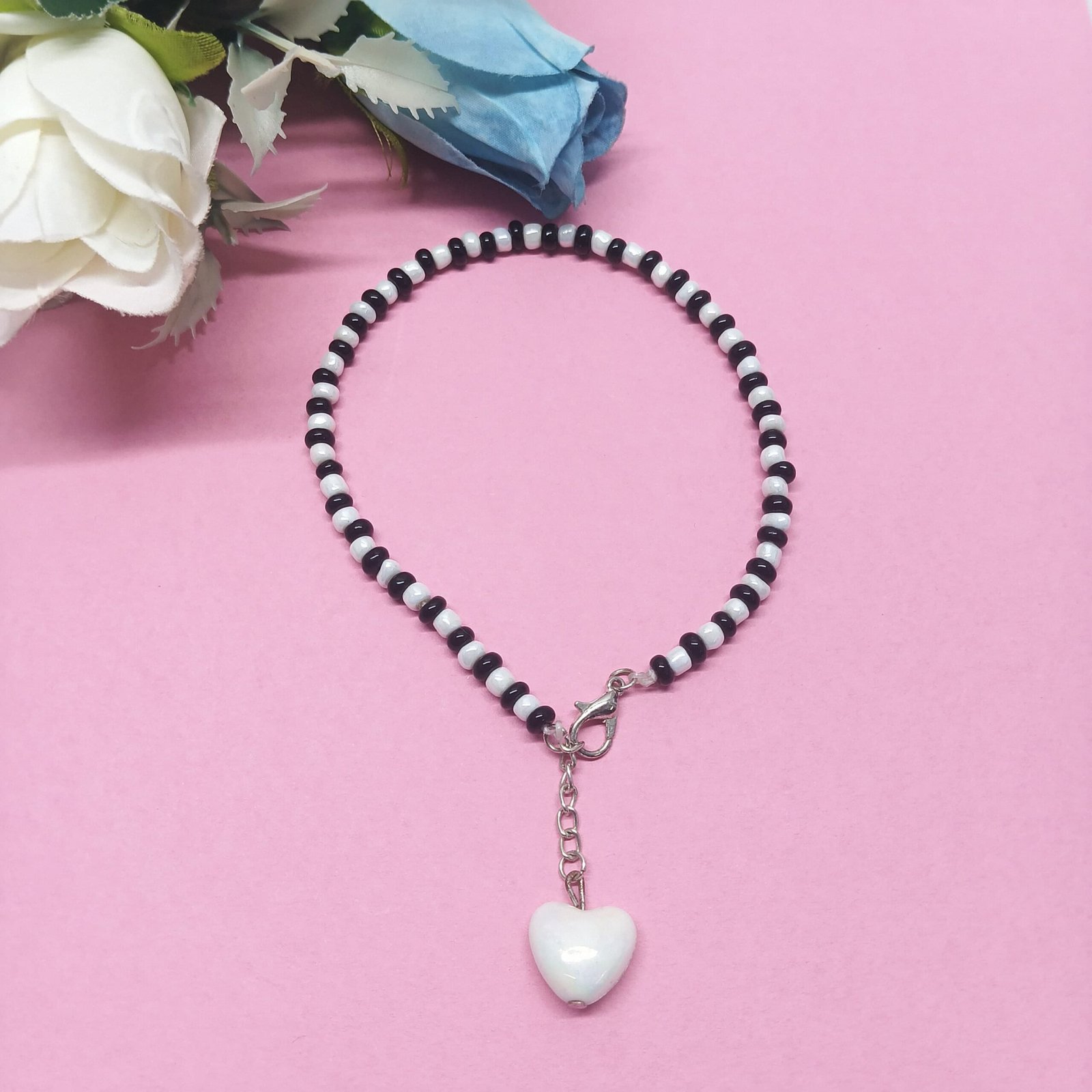 Handcrafted Black & White Beaded Anklet for Women |Minimal Jewelry| Ideal for Everyday, Casual outfits Or Special Occasions