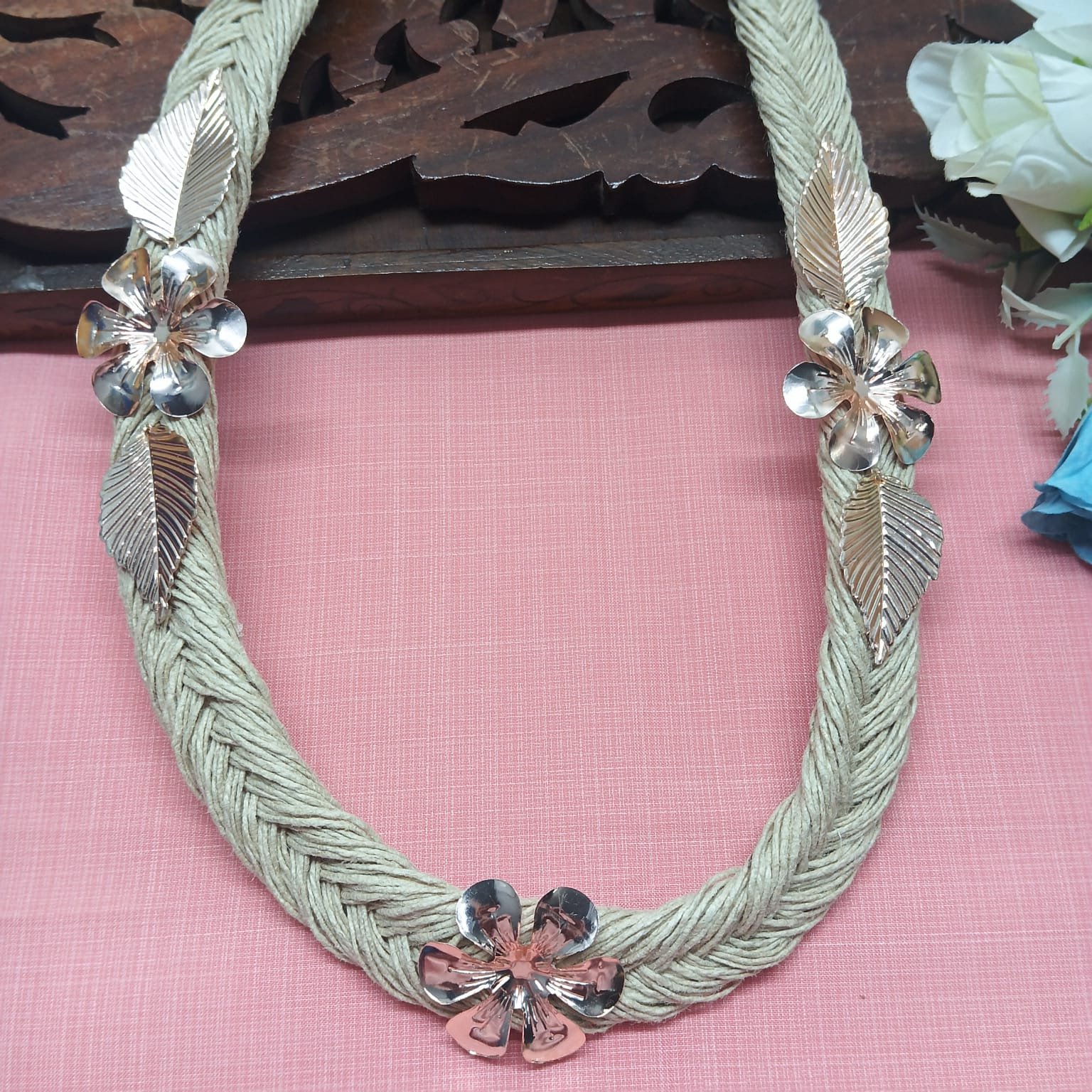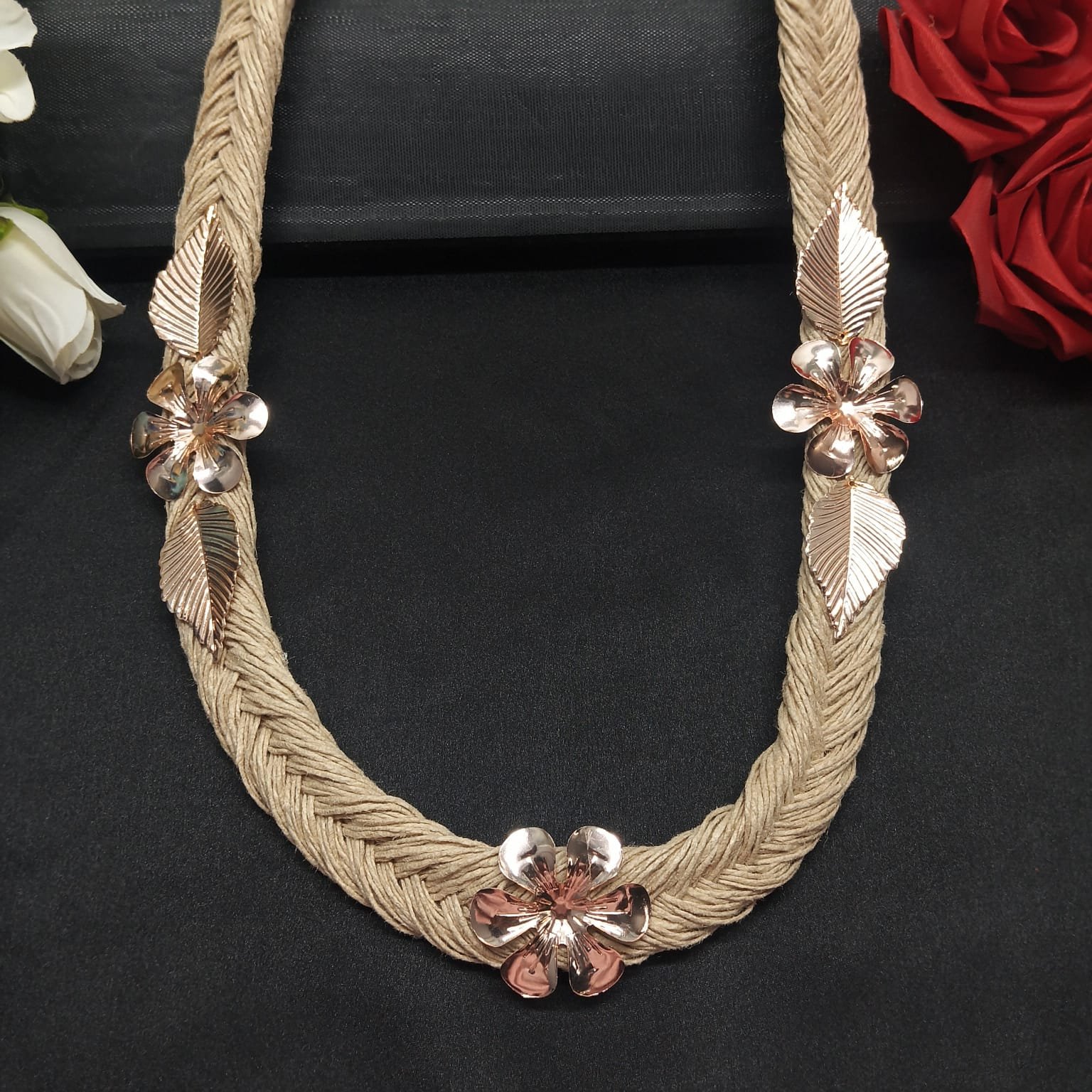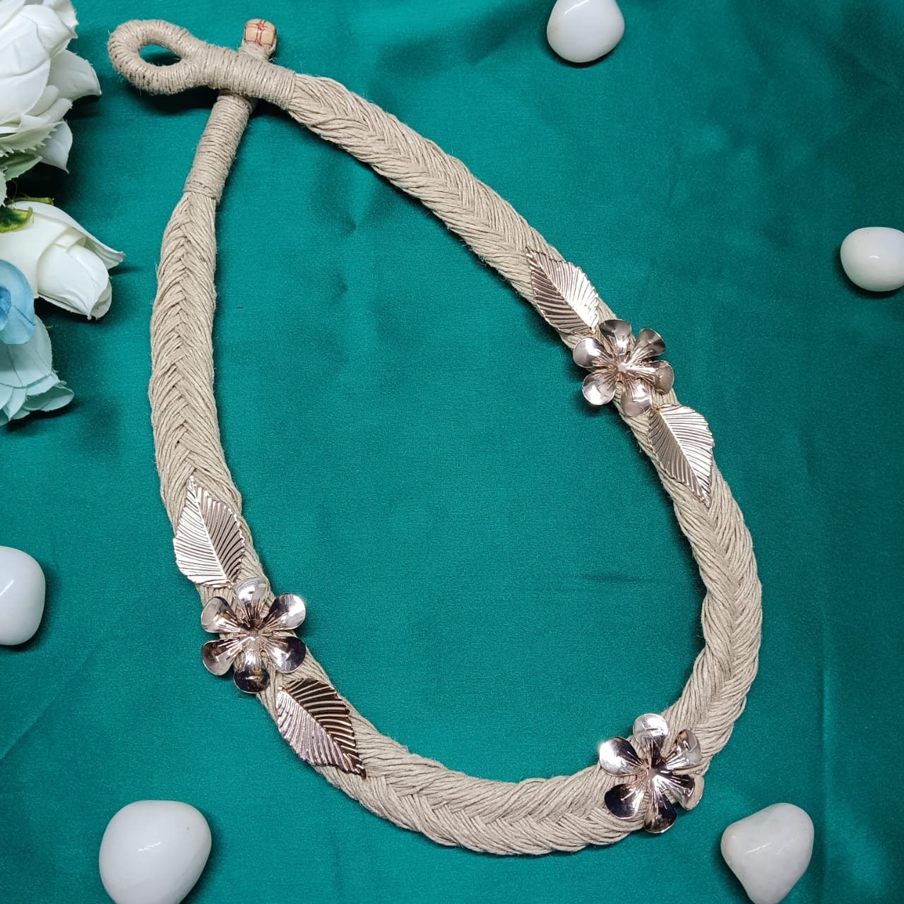 Handcrafted Braided Jute Necklace with Floral Motifs for Women and Girls |Eco-Boho Statement Jewelry | Ideal for Boho jewelry , Casual Or Special Occasional