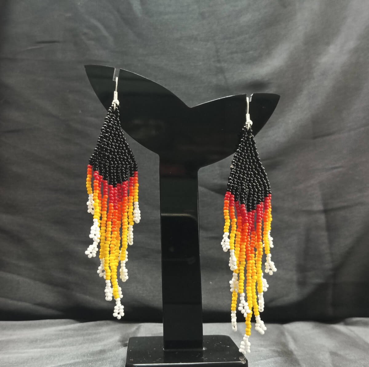 - PRODUCT DETAILS: NIPSTec’s handmade beaded dangle earrings feature a striking color gradient, transitioning from deep black to vibrant shades of red, orange, and yellow, with white accents at the tips. The intricate beadwork creates a textured, fringe-like effect, adding movement and flair. Lightweight and eye-catching, these earrings effortlessly add a pop of color while enhancing any look with their unique design.
