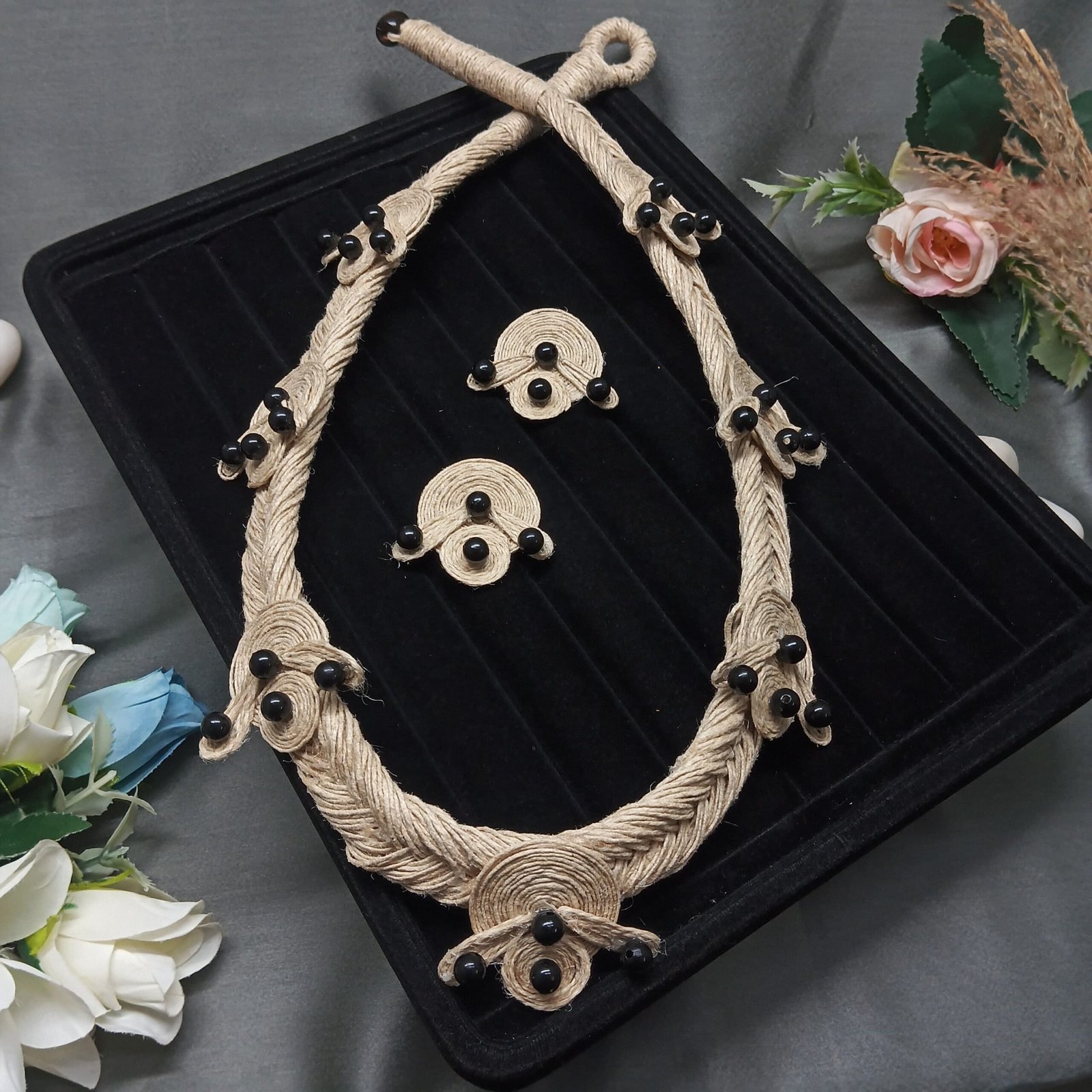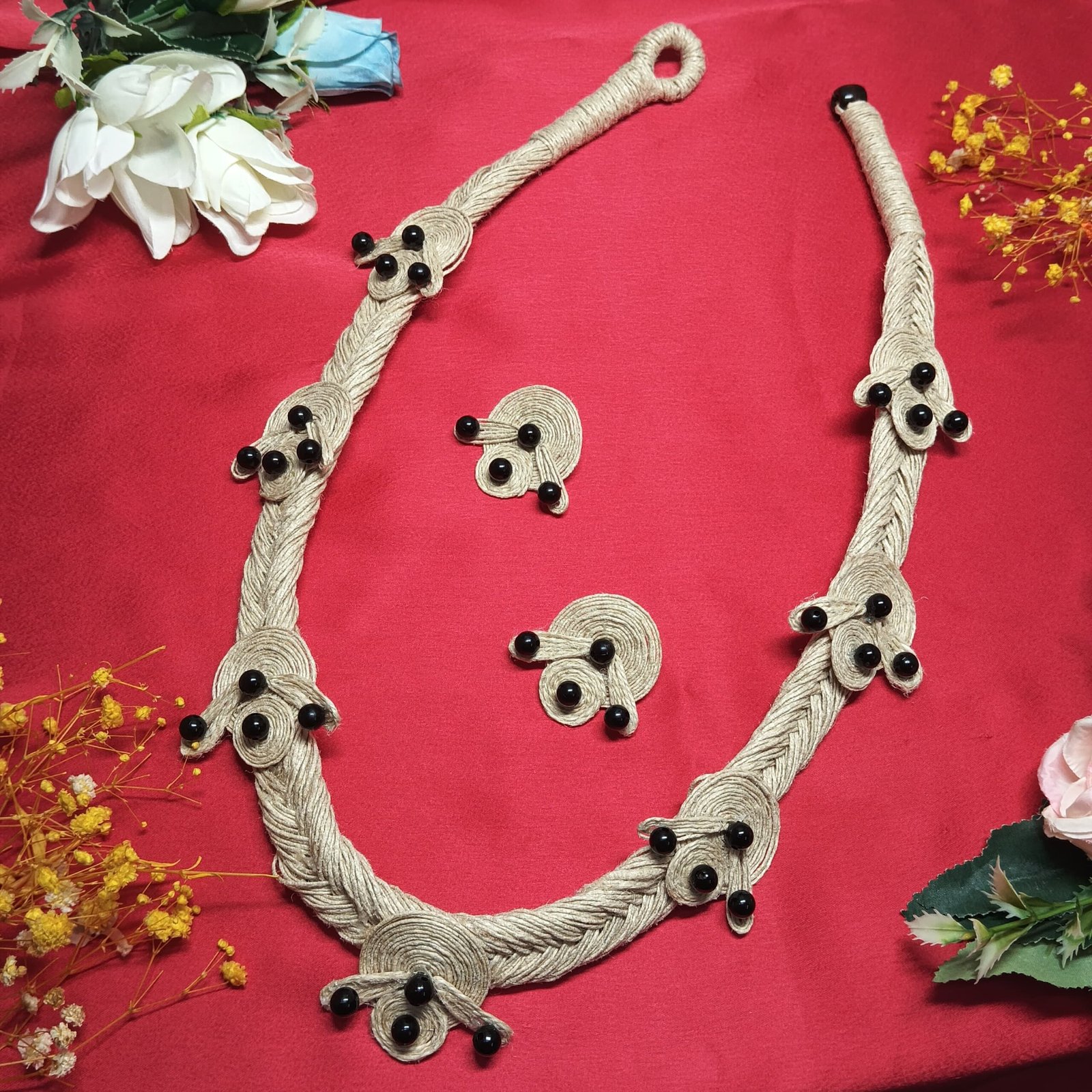 Handmade Jute Necklace Set with Black Bead
