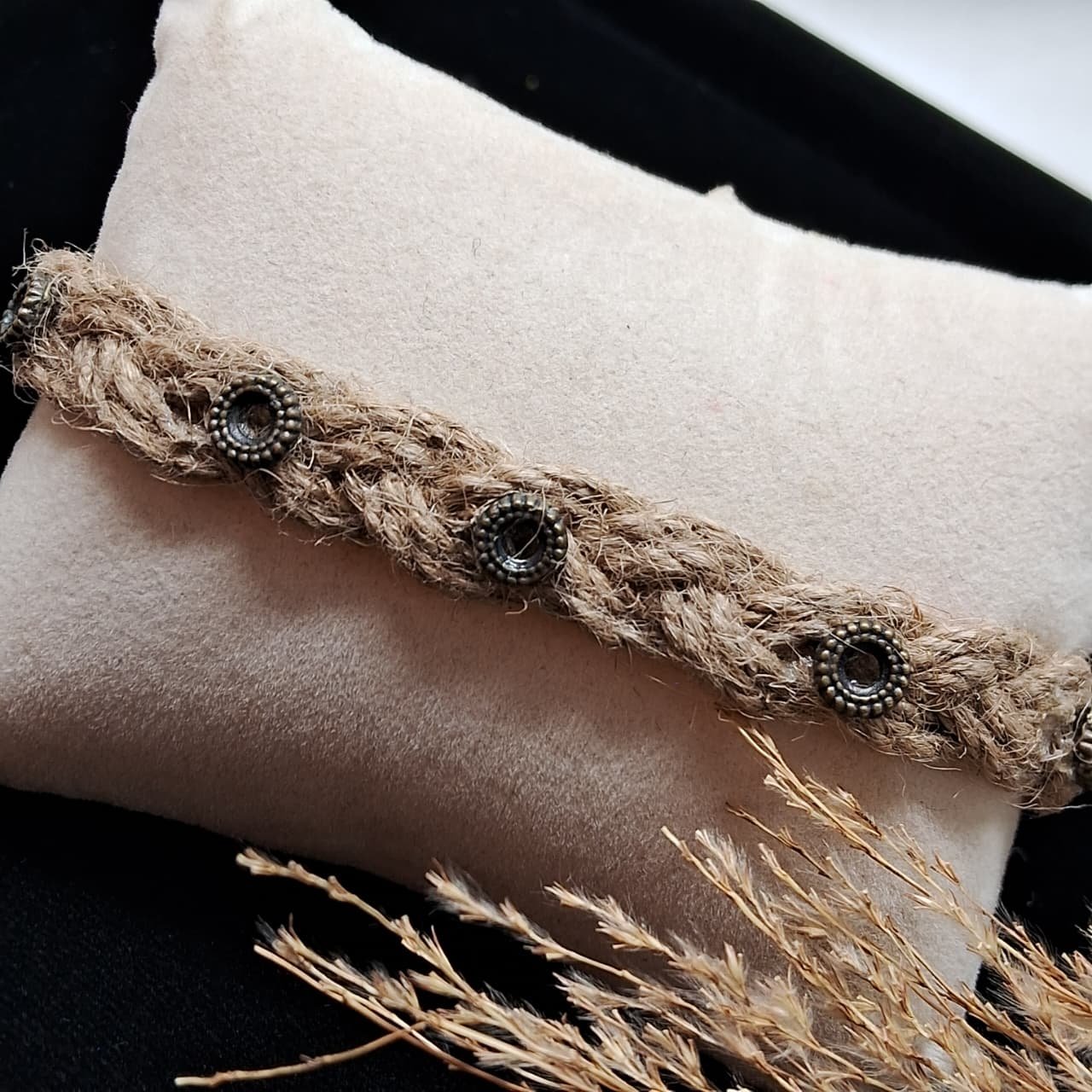 - PRODUCT DETAILS: This handcrafted bracelet is made from natural jute rope, offering a rustic and earthy look. The braided design is complemented with antique-finish metal accents for added detail. It is secured with a lobster clasp for durability and comfortable wear. Suitable for casual use, beach outings, and gifting, this bracelet combines natural texture with boho style.