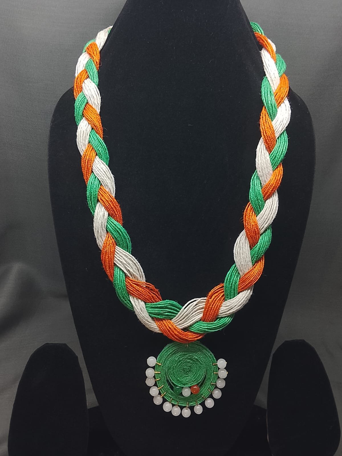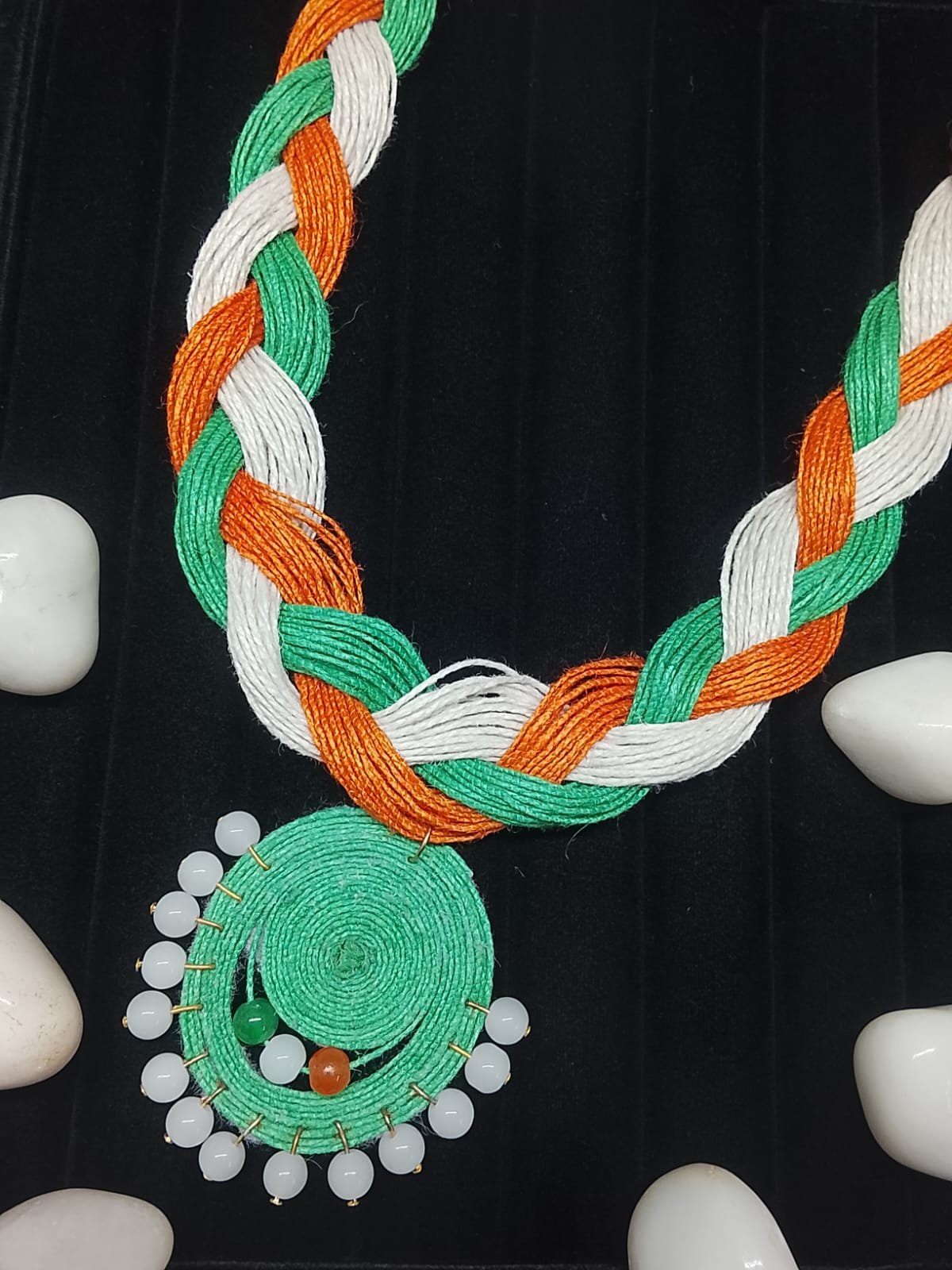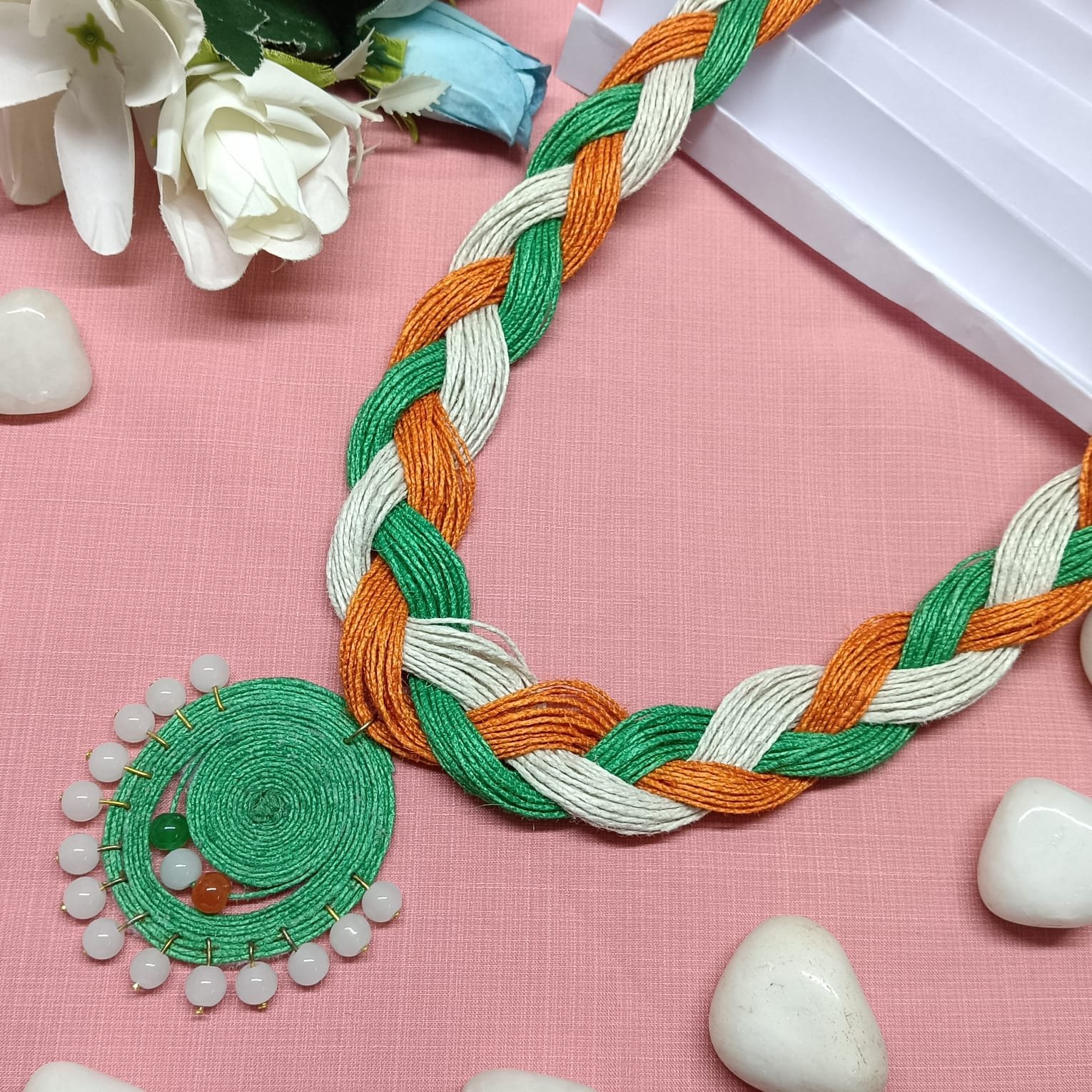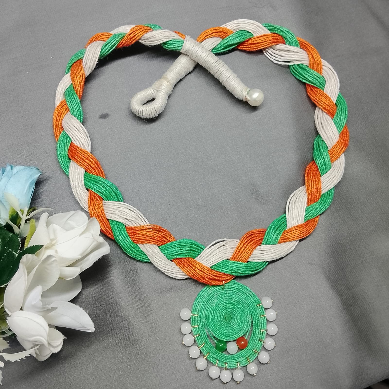Handcrafted Tricolor Braided Necklace for Women | Indian Flag Themed Jewelry for Independence Day, Republic Day & Cultural Events