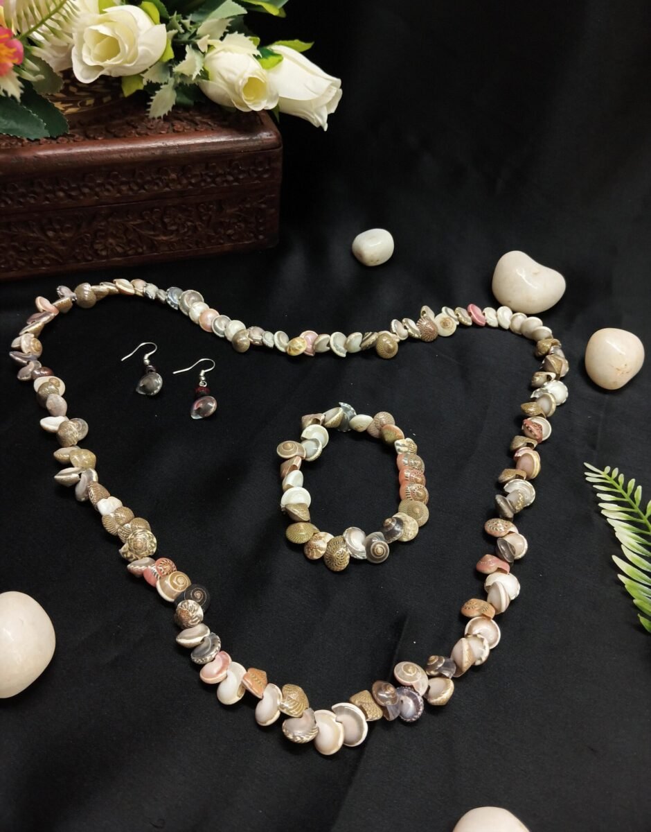 - PRODUCT DETAILS: This handmade necklace set is crafted from natural sea shells and brings a touch of coastal charm to your accessory collection. The complete set includes a necklace, a matching bracelet, and a pair of earrings, offering versatile styling options. Whether you wear all the pieces together or mix and match them individually, this set complements beachwear, summer dresses, and casual outfits effortlessly. Each piece is carefully handcrafted, celebrating the natural beauty of the ocean with an earthy, bohemian style. Lightweight and comfortable, it’s a great addition to your vacation wardrobe or as a thoughtful gift for anyone who loves seaside-inspired fashion.