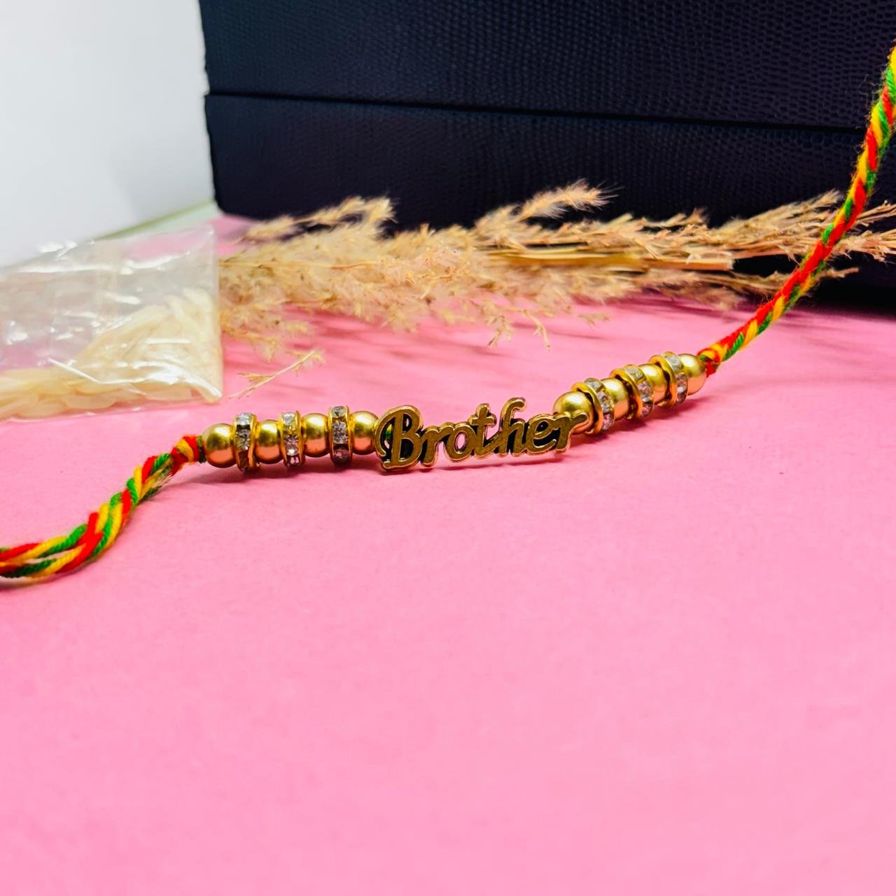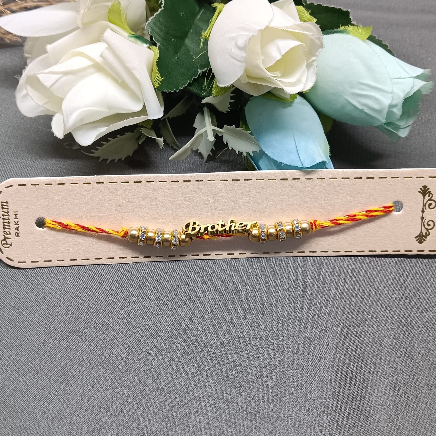 - PRODUCT DETAILS: Celebrate the eternal bond of siblinghood this Raksha Bandhan with a rakhi that’s both stylish and heartfelt. This Brother Rakhi for Men is beautifully designed with radiant gold-tone beads, sparkling crystal rings, and a central “Brother” charm that speaks for itself. Handmade with love, this rakhi is not just a thread, but a lasting symbol of your affection and protection. Whether your brother is near or far, surprise him with a rakhi that blends tradition with elegance.A perfect Raksha Bandhan gift for your brother — meaningful, festive, and crafted with care.