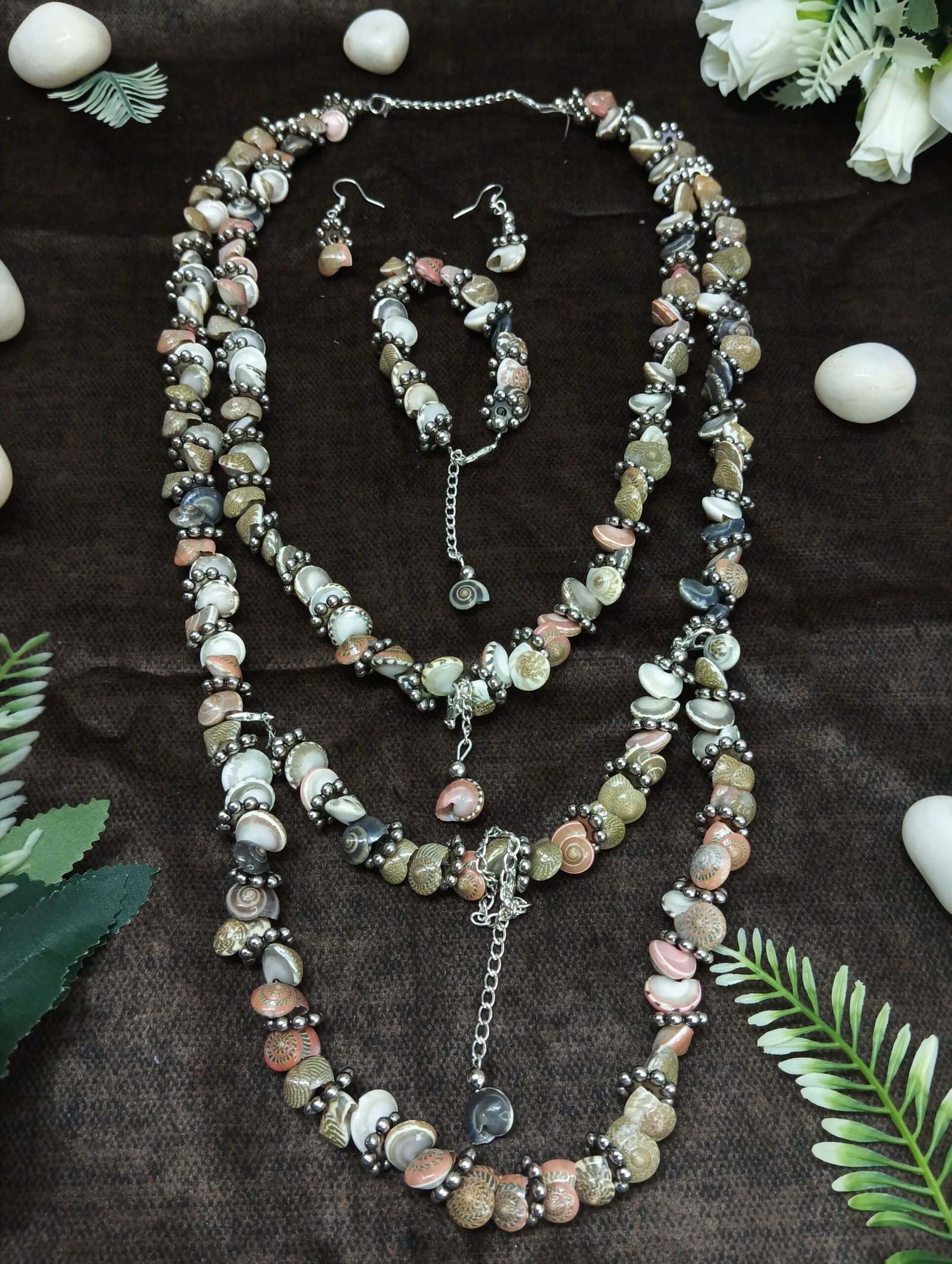 Handmade Shell Bead Necklace Set Multi-Layered & Convertible Design Wear as Necklace, Bracelet, or Anklet| Natural Boho Jewelry for Beach Days & Everyday Looks.