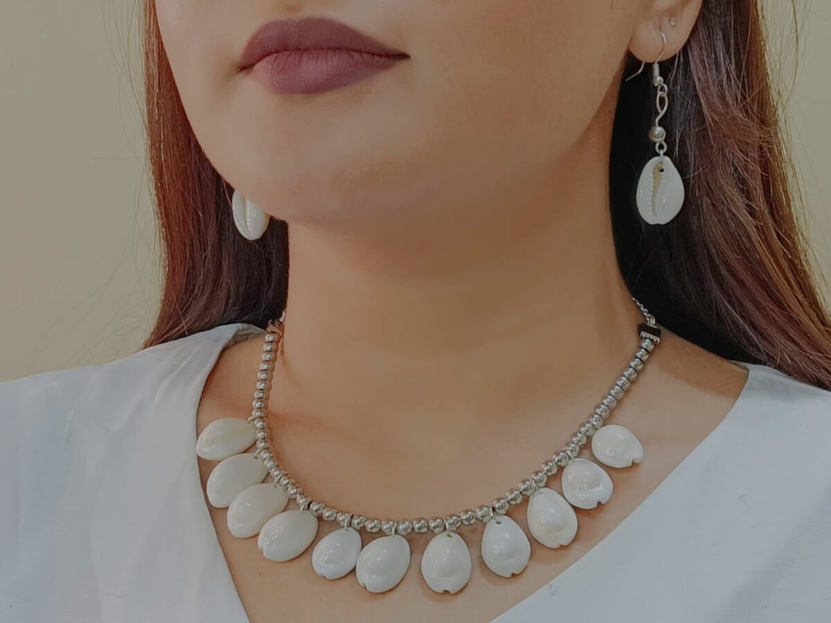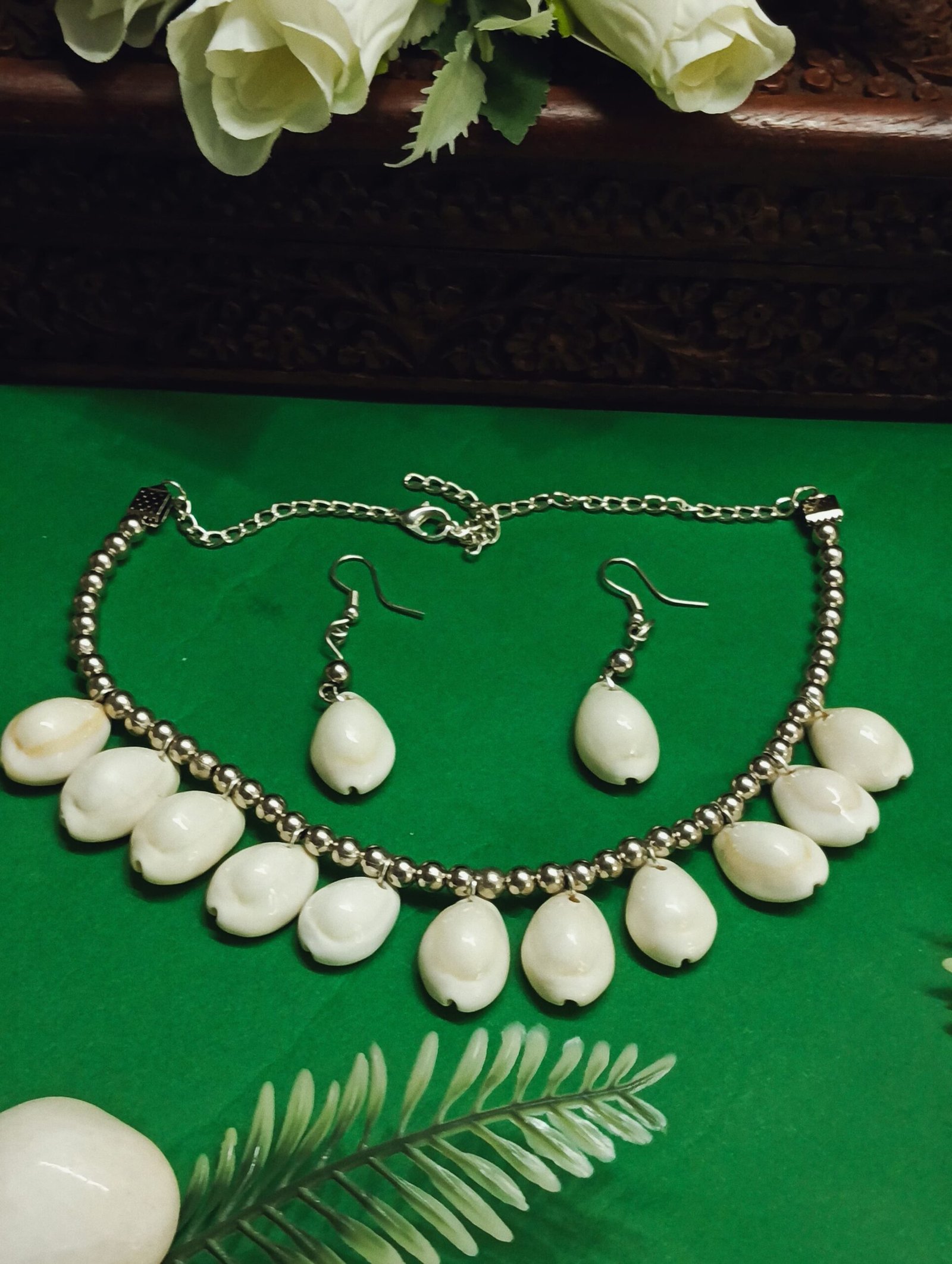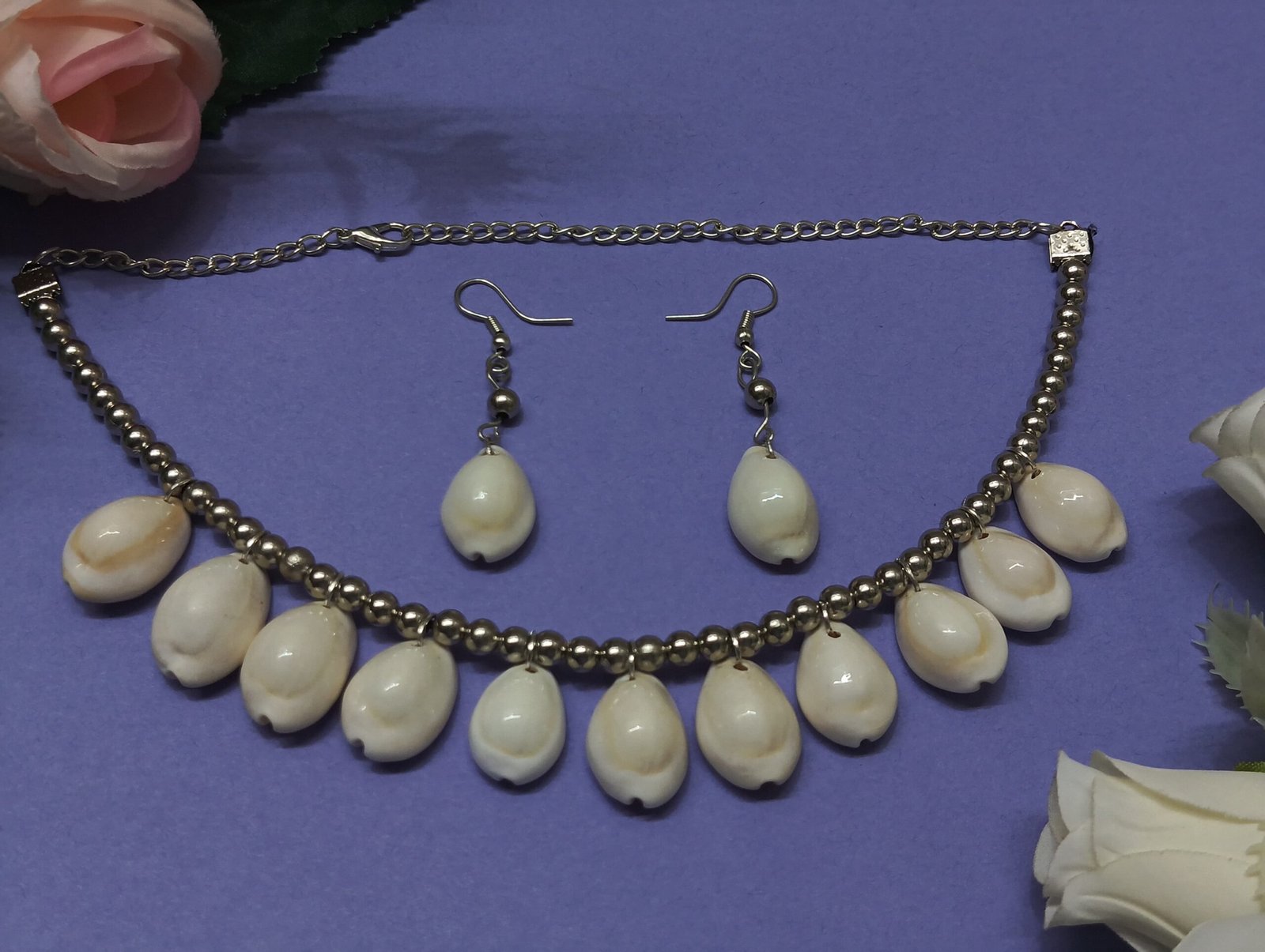 - PRODUCT DETAILS: Channel effortless beachside elegance with this ocean-inspired jewelry set, featuring a silver-toned necklace and matching earrings. The necklace is adorned with delicate round beads and a graceful arrangement of smooth, natural cowrie shells along the lower half, creating a light, breezy look. The matching hook earrings each showcase a single dangling shell for simple, refined charm. Perfect for everyday wear, summer outings, or adding a coastal touch to your style, this set is a beautiful blend of casual grace and natural beauty—an ideal gift or personal treat.