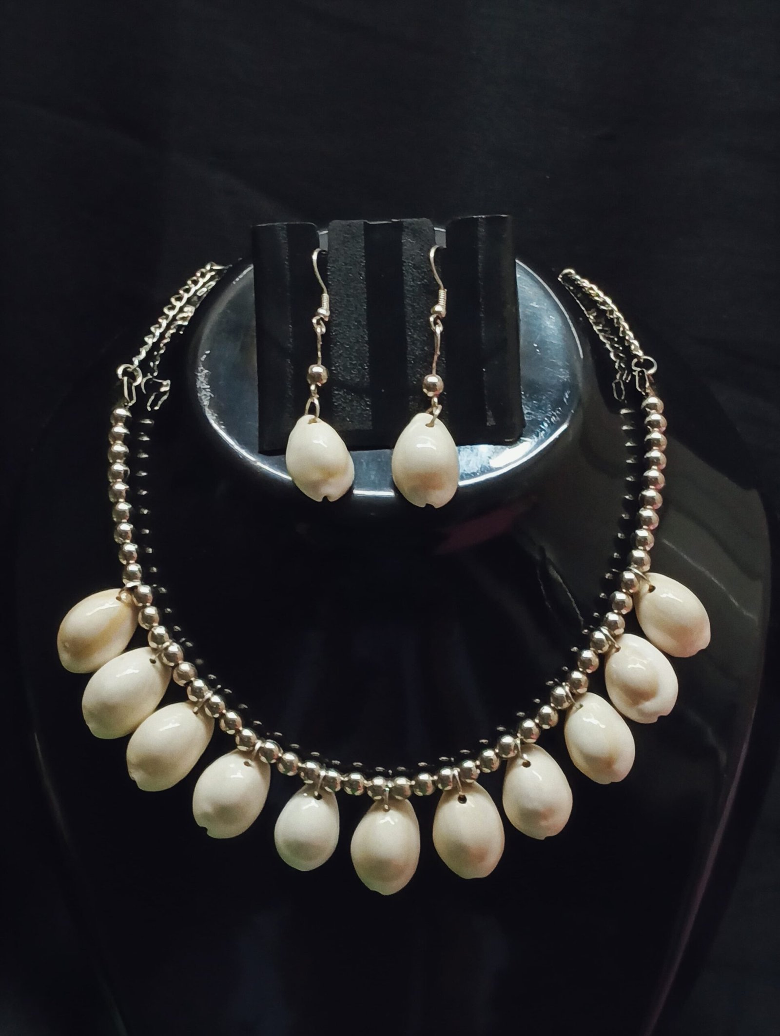 Handmade Shell Necklace with Earrings jewelry set for Women and Girls| Boho Coastal Summer Accessories | Natural minimal jewelry for Summer outfits