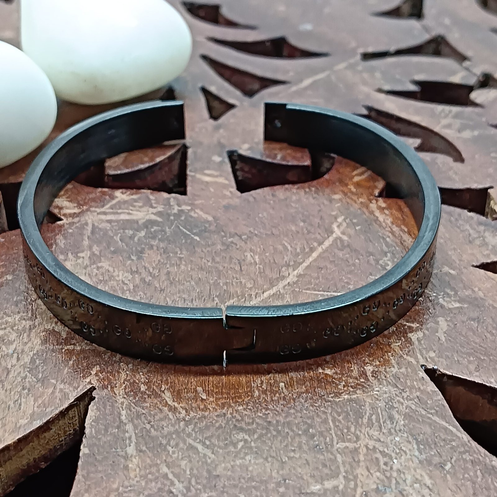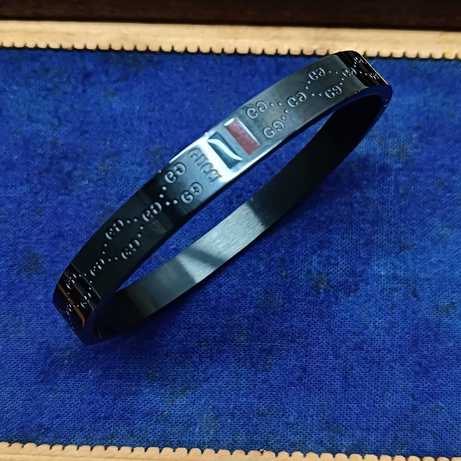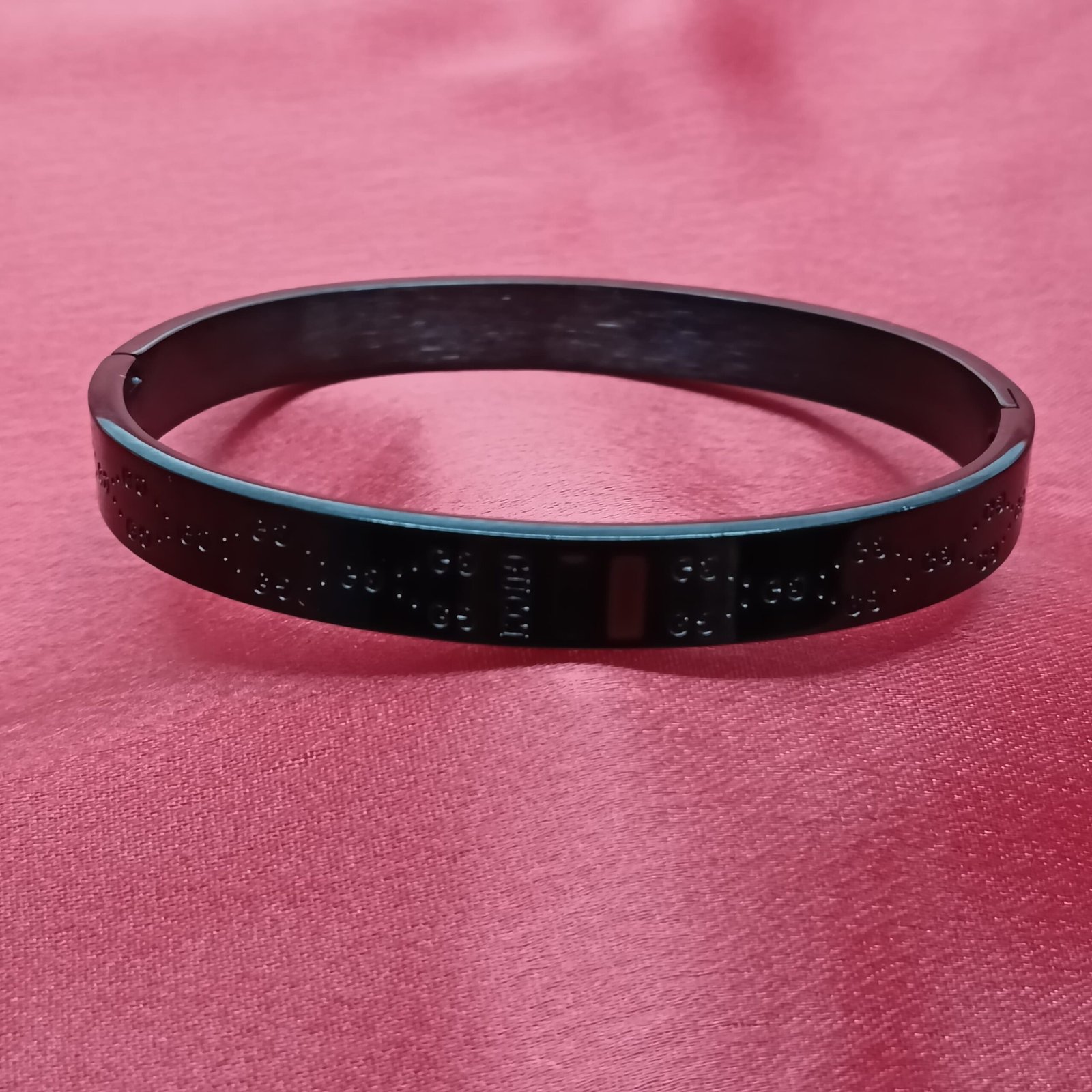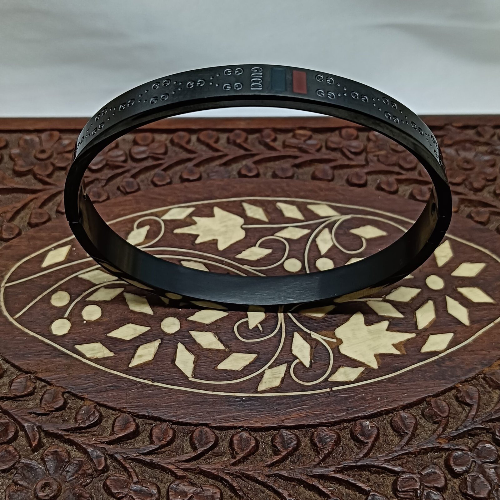 - PRODUCT DETAILS: Bold, minimalist, and unmistakably stylish — this black metal bracelet brings together modern design and iconic detailing in one sleek accessory. Designed in a classic kada style, the bracelet features repeated textural patterns accented by small circular, braille-like dots for a unique finish. A vibrant red and green stripe runs through the design, adding a subtle yet striking pop of color. The smooth, polished surface and hinged clasp make it easy and comfortable to wear, whether for everyday outings or evening occasions. Perfect for daily wear, this bracelet is more than just an accessory , it’s a refined statement of contemporary fashion.