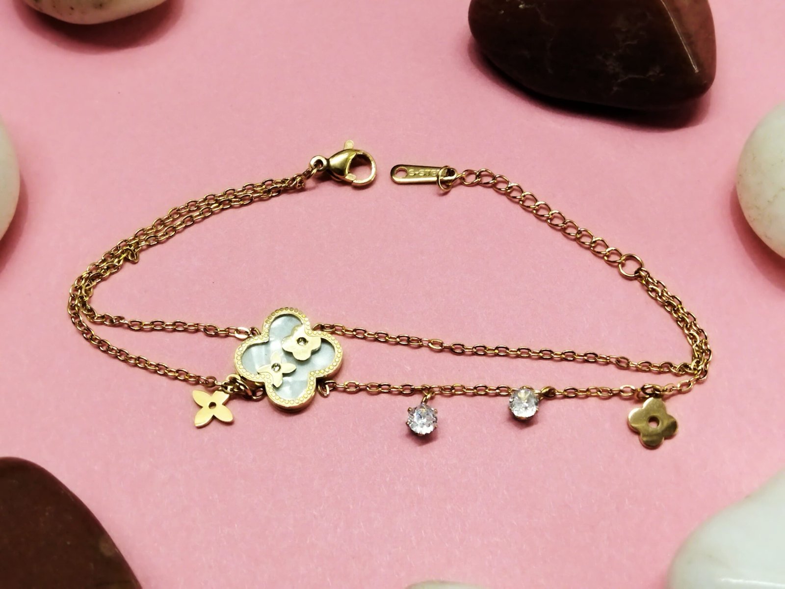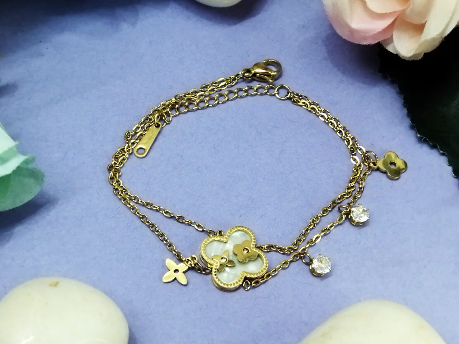 Be the first to review “Layered Floral Bracelet With Charms” Cancel reply