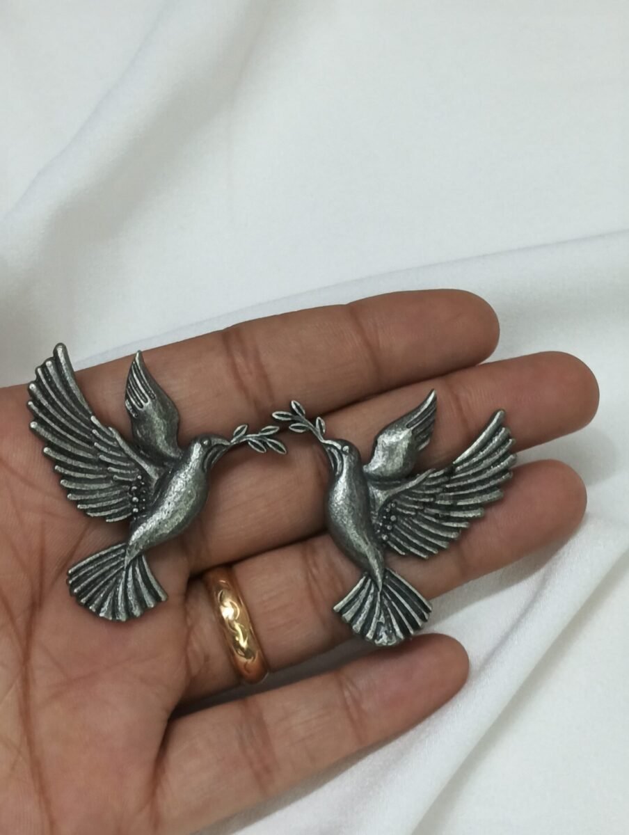 - PRODUCT DETAILS: These elegant silver-look bird earrings are beautifully crafted with a striking black plating, symbolizing grace and freedom. The delicate bird design, holding a subtle leaf-like motif in its beak, represents both wisdom and harmony with nature. This thoughtful detailing adds depth and meaning, making the earrings more than just an accessory — they are a celebration of beauty, independence, and gentle strength. Lightweight and comfortable, these earrings effortlessly complement both casual and festive attire. Their artistic design and symbolic touch make them a standout addition to any jewelry collection, perfect for women and girls who love to express elegance with a deeper story.
