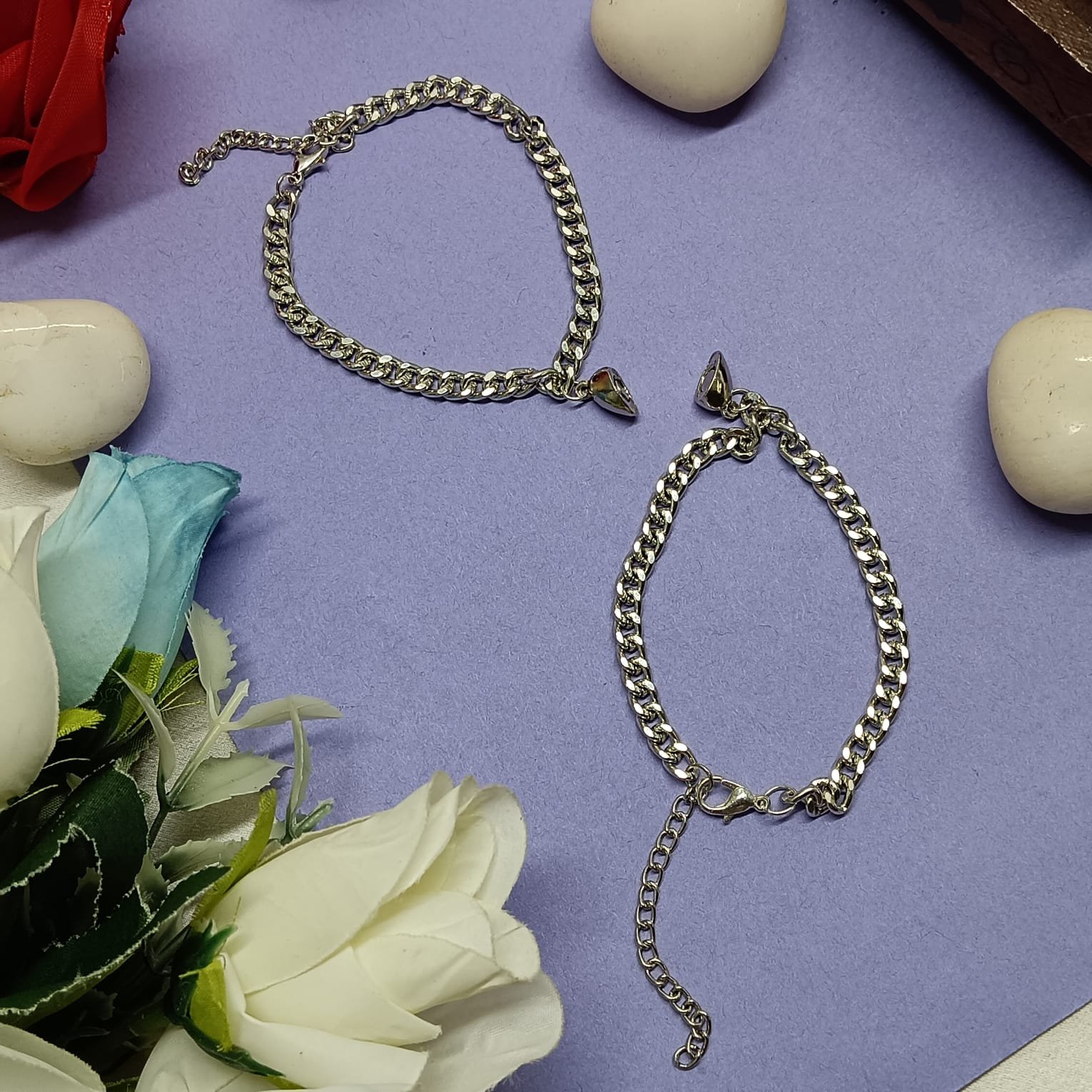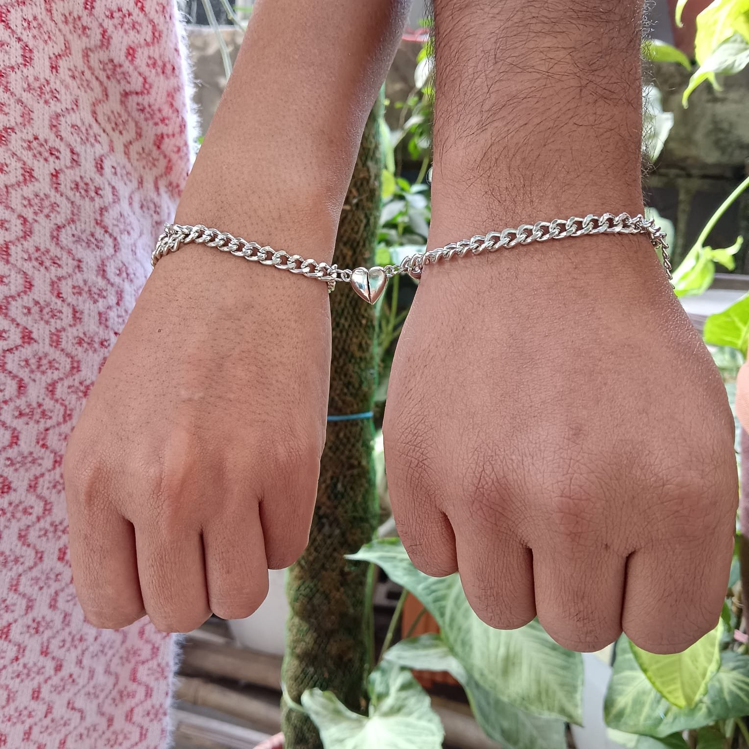 - PRODUCT DETAILS: Celebrate your connection with this magnetic couple bracelet set, featuring two link chain bracelets with heart-shaped magnet that attract and connect when brought together. A modern expression of unity and affection, each bracelet symbolizes the powerful bond between partners or close friends. Crafted with durable alloy and adjustable link chains, these bracelets are designed for daily wear while offering a meaningful reminder of love and togetherness. When worn apart, they serve as individual accessories; when together, the magnetic hearts click into place—just like you and your person. Perfect for anniversaries, Valentine’s Day, birthdays, or long-distance relationships, this set makes a thoughtful gift that speaks volumes without saying a word.
