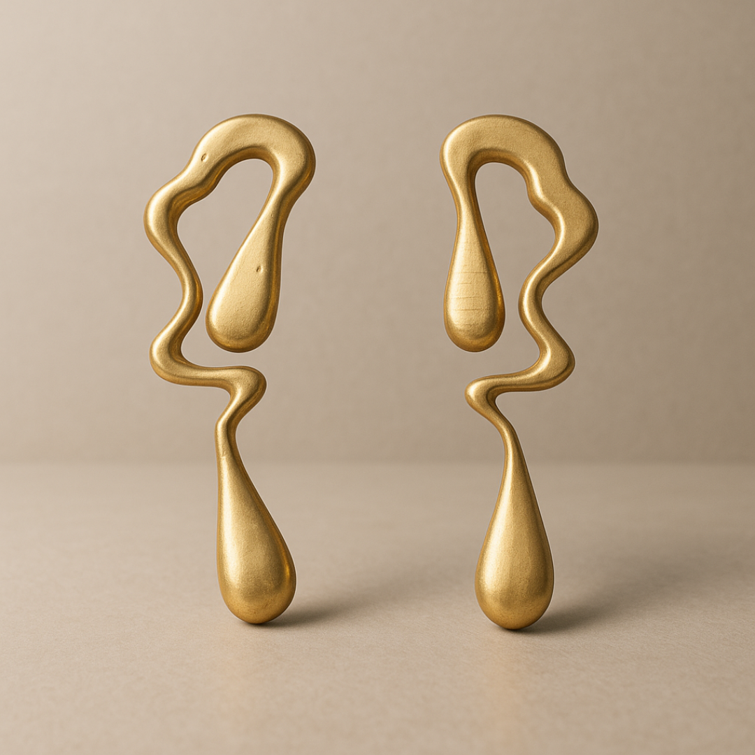 Abstract Brass Jewelry| Mismatched Flowing Design| Lightweight, Hypoallergenic, Tarnish-Free & Waterproof| Perfect for Parties, Events & Fashion Wear