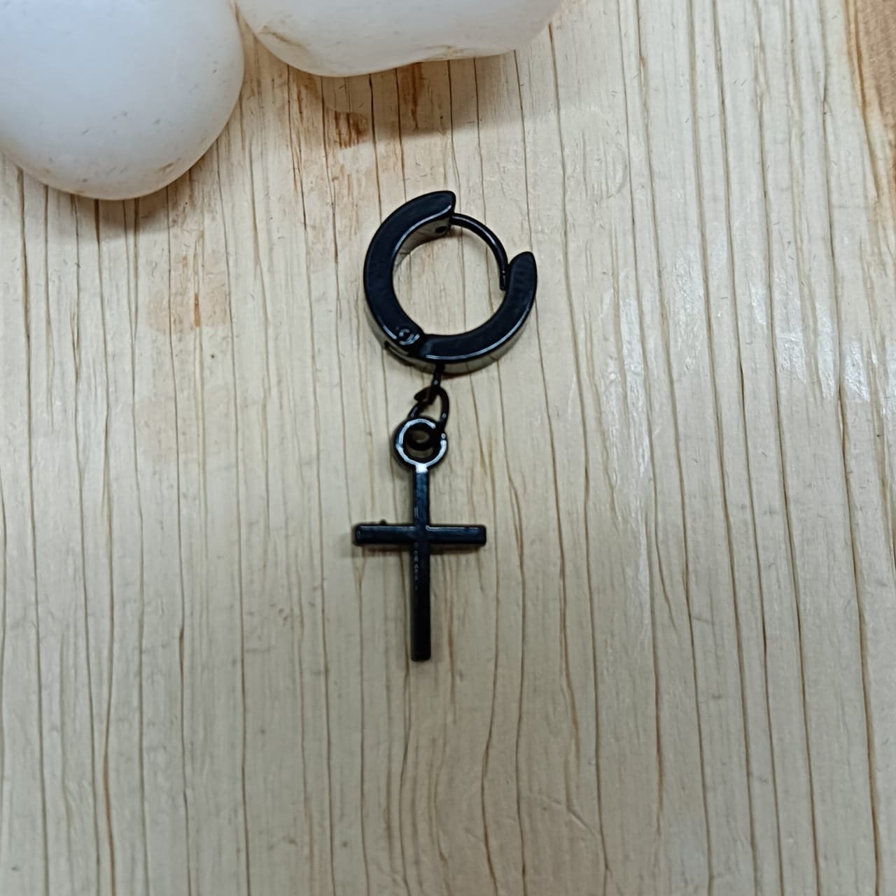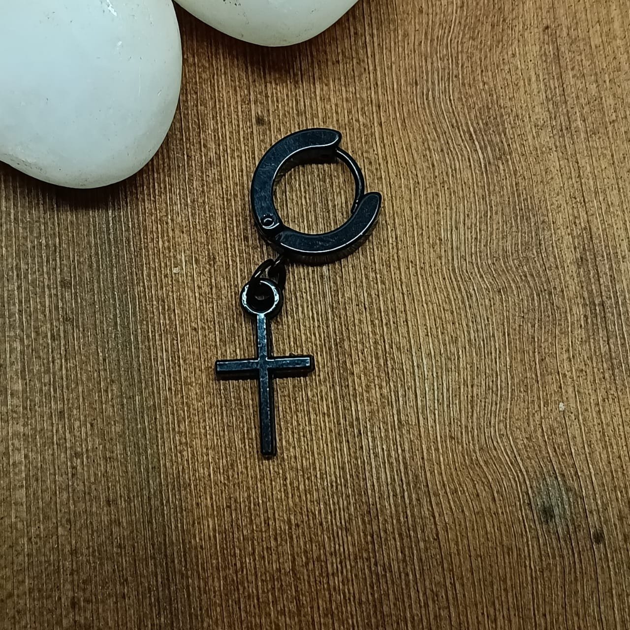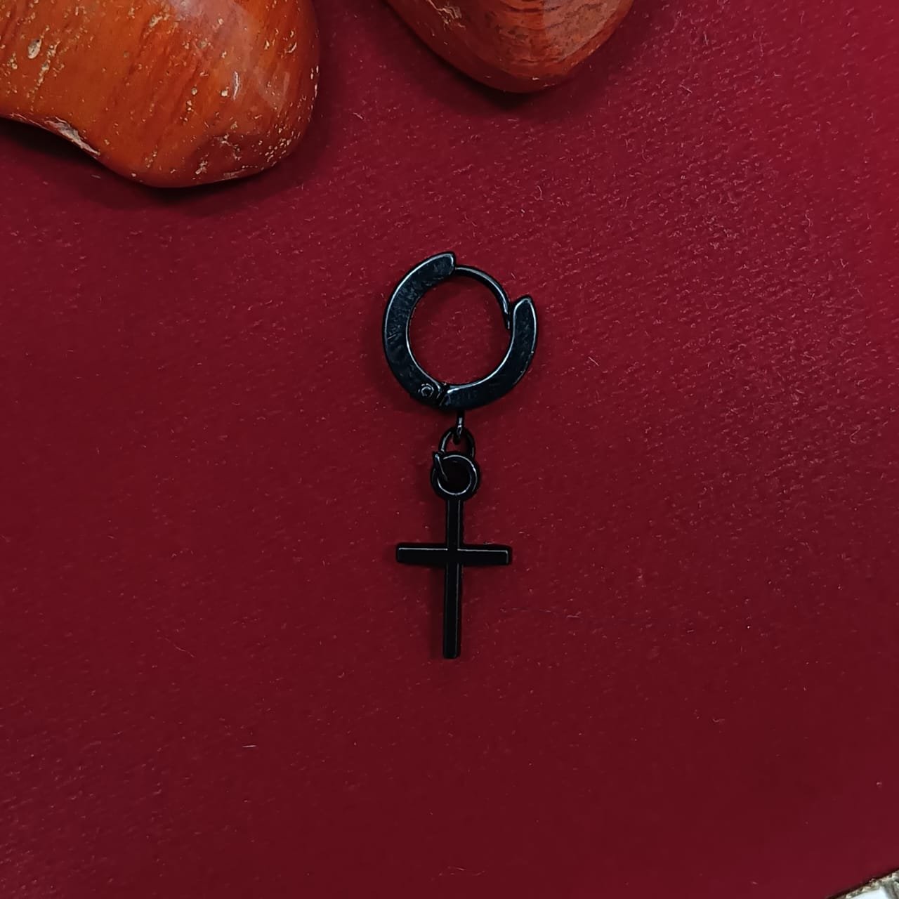 Be the first to review “Men’s Black Cross Hoop Earring” Cancel reply