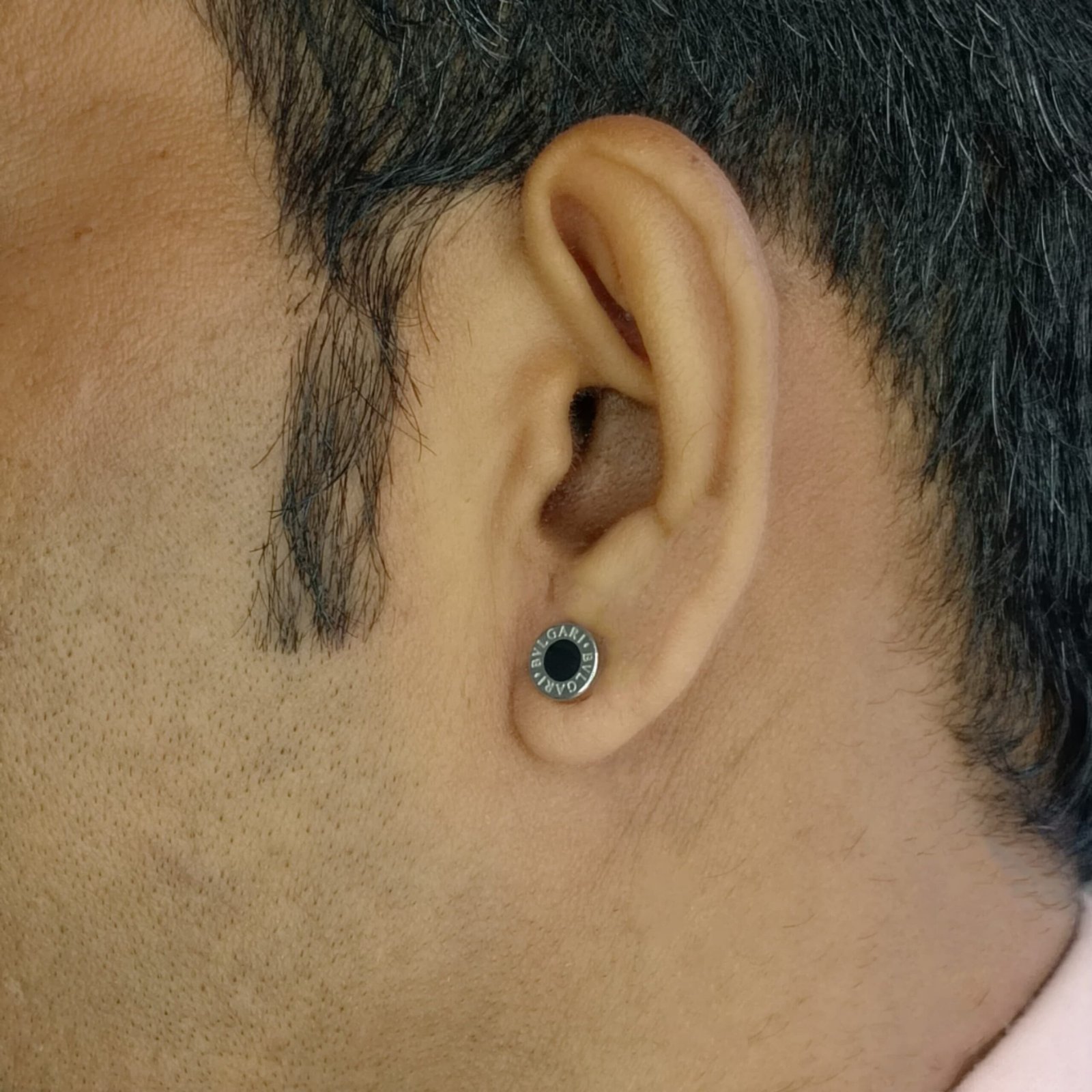 - PRODUCT DETAILS: Add a bold and refined touch to your everyday style with these black round stud earrings for men. Made from high-quality stainless steel, these studs feature a sleek black enamel center surrounded by engraved circular detailing — giving them a modern, urban edge that stands out without trying too hard. Whether you’re keeping it casual or dressing things up, these earrings are all about understated luxury and timeless appeal. Comfortable, durable, and effortlessly stylish, they’re the kind of accessory that speaks for itself — perfect for the man who knows the power of subtle details.