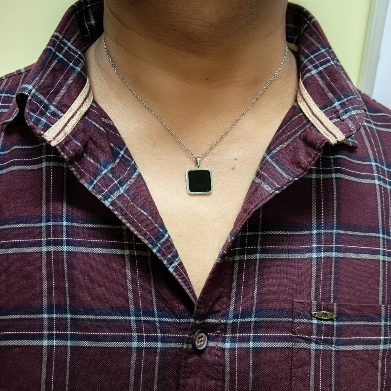 - PRODUCT DETAILS: Discover the perfect balance of simplicity and strength with this classic men’s chain , featuring a striking black square pendant framed in silver. Clean, confident, and effortlessly cool, this piece brings a refined touch to any outfit—whether you’re suiting up for work, heading out for the weekend, or marking a special moment. With a lightweight feel and finely linked chain, it’s made for all-day comfort, while the high-contrast design of polished black enamel and silver trim gives it a timeless, upscale look. This is your go-to necklace for expressing quiet confidence and everyday elegance.