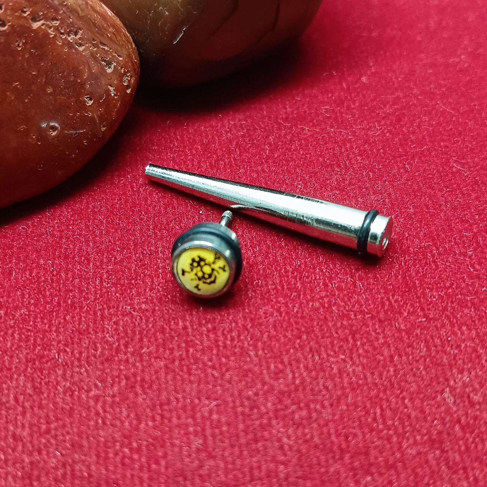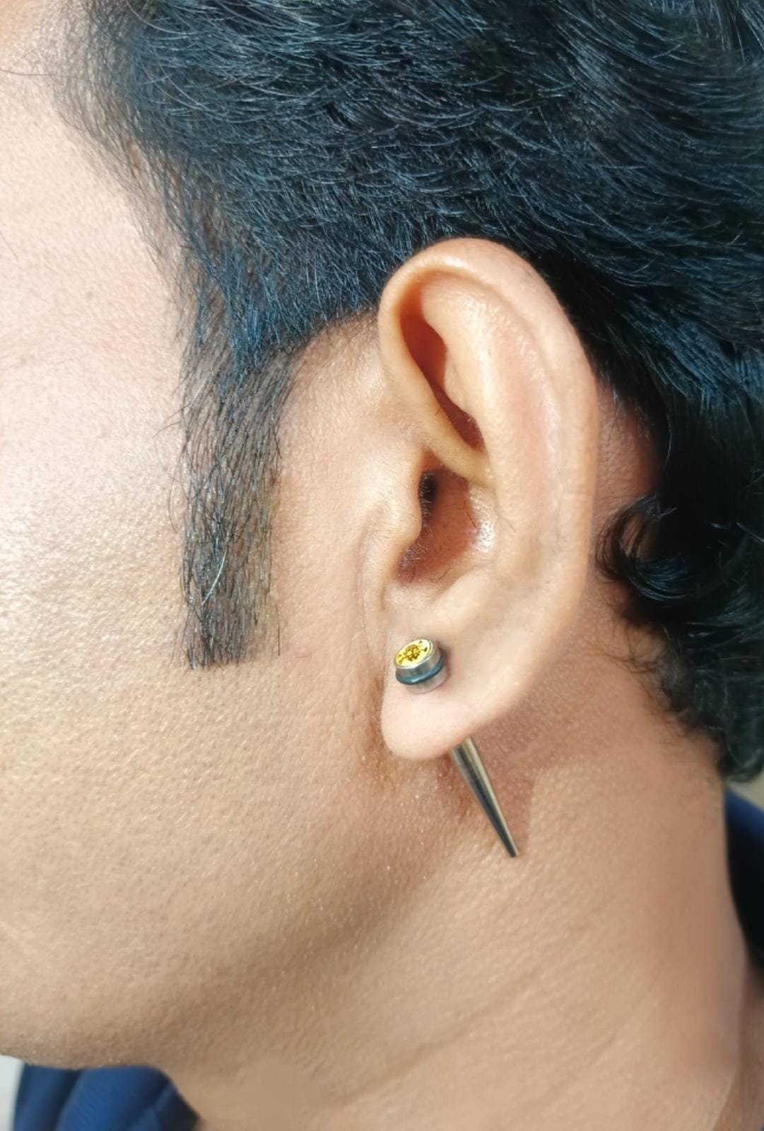 - PRODUCT DETAILS: Add a rebellious twist to your look with this spike-shaped fake gauge earring built for those who love bold style without the commitment of stretching. Designed to mimic the look of a real gauge, this piece features a sleek metallic disc with a subtle gold accent up front , and a long, conical spike at the back that brings major attitude from every angle. Made from high-quality stainless steel, it’s rust-proof, hypoallergenic, and comfortable for everyday wear. The screw-back closure keeps it securely in place whether you’re out at a concert, hitting the club, or just adding edge to your daily fit. It’s modern, dramatic, and unapologetically cool.