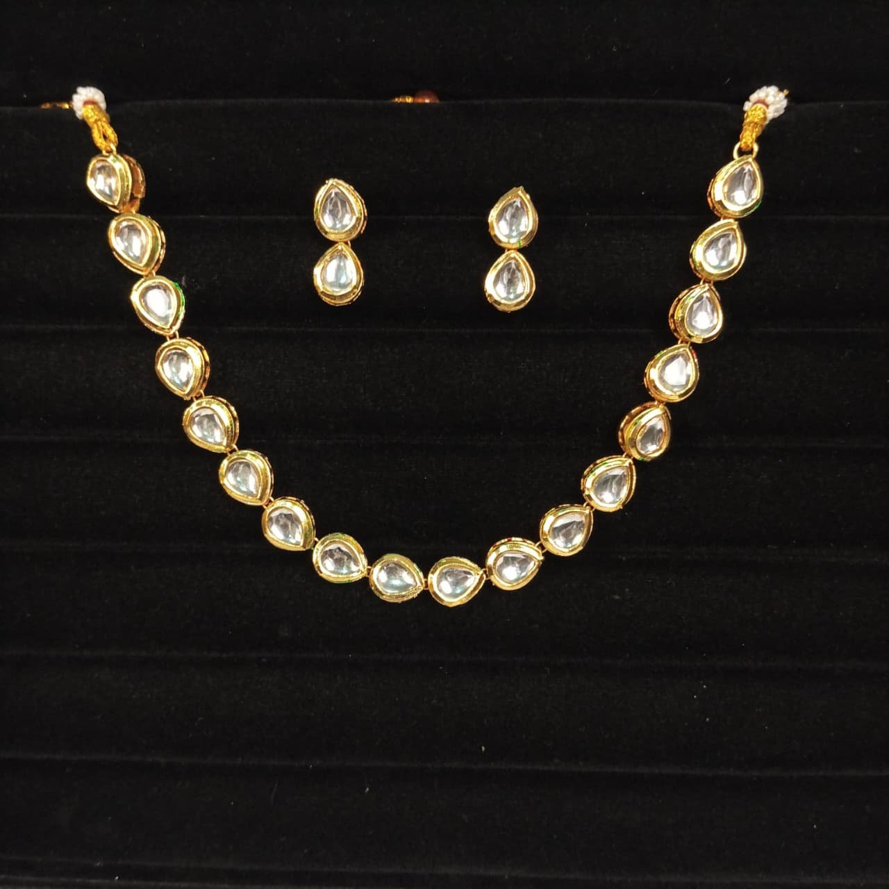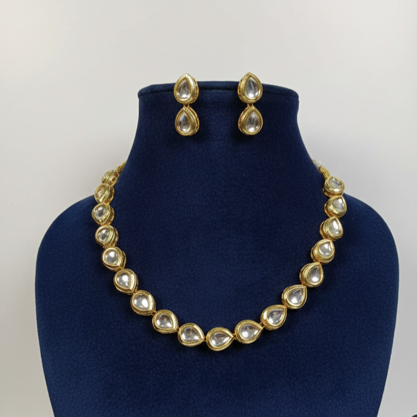 - PRODUCT DETAILS: This beautifully minimal necklace set brings effortless elegance to every look. Featuring clear pear-cut stones set in a rich gold-tone finish, each element is crafted to reflect soft, refined brilliance without being overpowering. The clean, uniform design gives it a timeless appeal—perfect for those who love Jewelry that speaks through subtle shine and graceful simplicity. Paired with matching pear-drop earrings, the set creates a cohesive, polished appearance that complements both modern and traditional outfits. Lightweight, versatile, and incredibly chic, it’s ideal for intimate gatherings, festive occasions, bridal events, or elevating everyday style with a touch of sophistication. A piece that blends minimalism with luxury, this necklace set is the perfect choice for anyone who values understated beauty and classic charm.