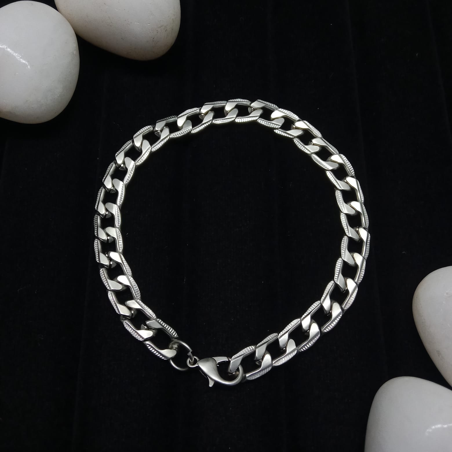 Men’s Silver Curb Bracelet – Minimalist Sleek Chain Jewelry for Casual, Everyday & Formal Wear
