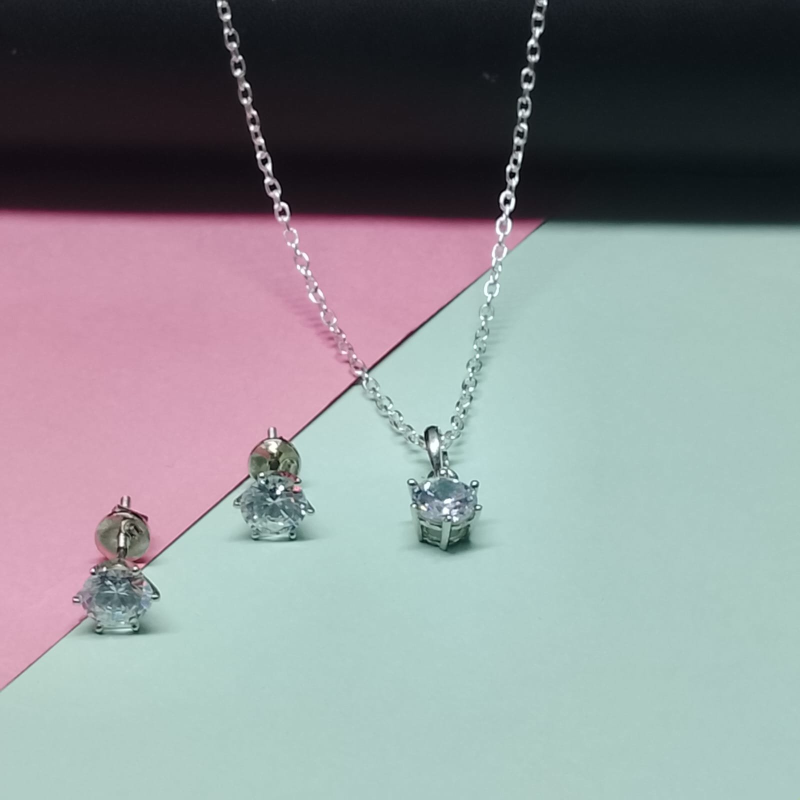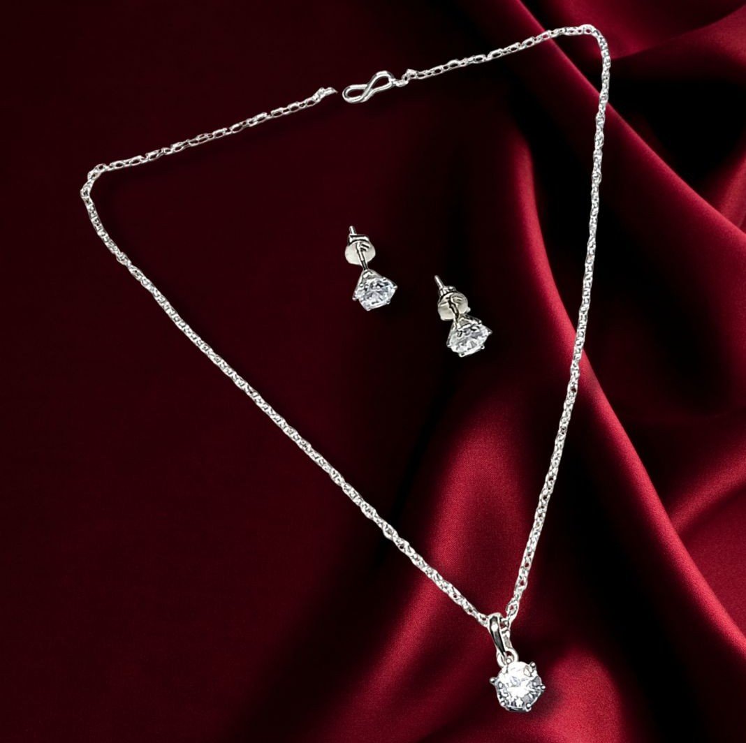 - PRODUCT DETAILS: Bring refined elegance to your jewelry collection with this beautifully crafted pendant and earring set. Designed with a minimalist touch, each piece showcases a single sparkling cubic zirconia-like AD stone that reflects light with a diamond-inspired brilliance. The pendant is paired with a coordinating pair of stud earrings, creating a balanced and timeless look. Lightweight yet eye-catching, this jewelry set transitions seamlessly from everyday wear to special occasions. Whether styled with casual outfits, office attire, or evening ensembles, it adds just the right amount of sophistication without being overwhelming. A versatile and thoughtful choice for personal wear or gifting.